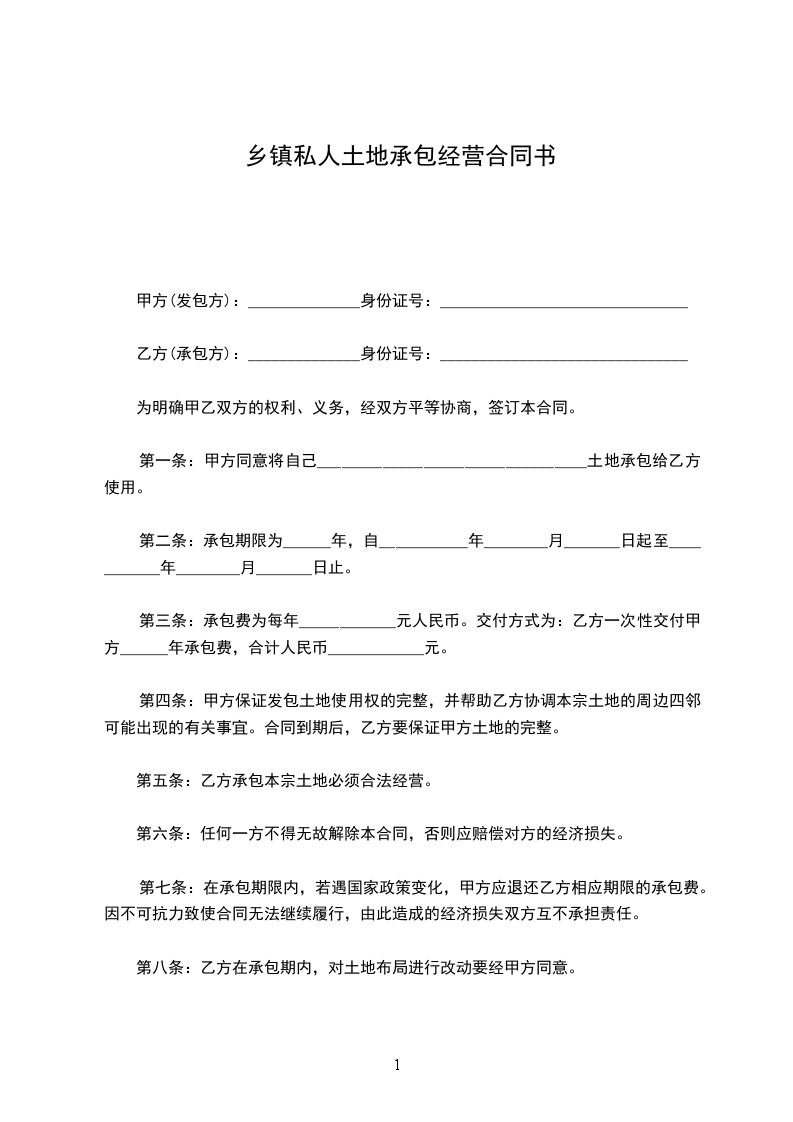 六、甲方承包的土地不能有任何争议、纠纷和债务。