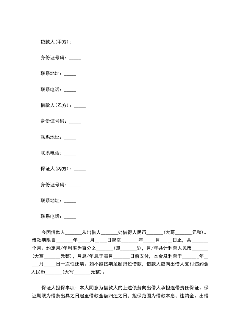 1、未经双方同意,任何一方当事人不得擅自变更或解除合同。如一方当事人要求变更或解除合同,应在__日内通知另一方当事人,并达成书面协议。本合同变更或解除后,借款方占用的借款和应付的利息仍应按本合同的规定偿付。