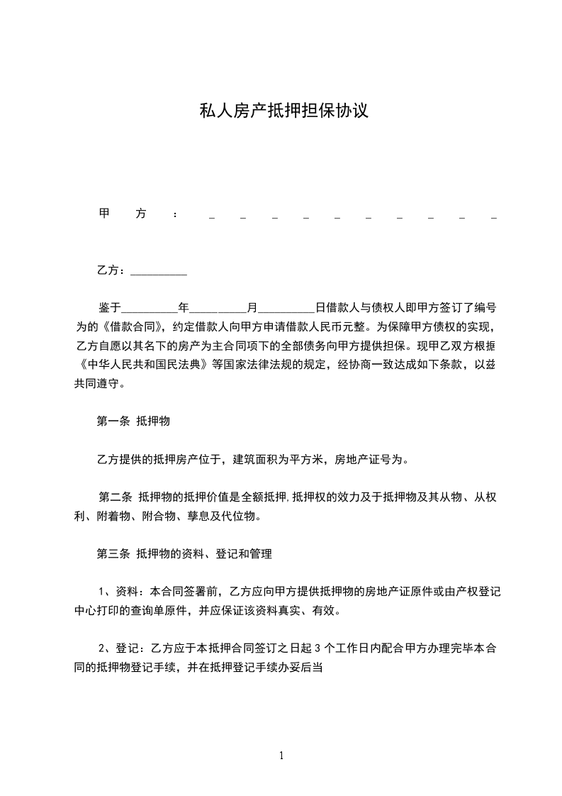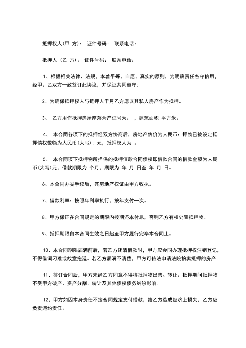 2、为确保抵押权人与抵押人于月乙方愿以其私人房产作为抵押。