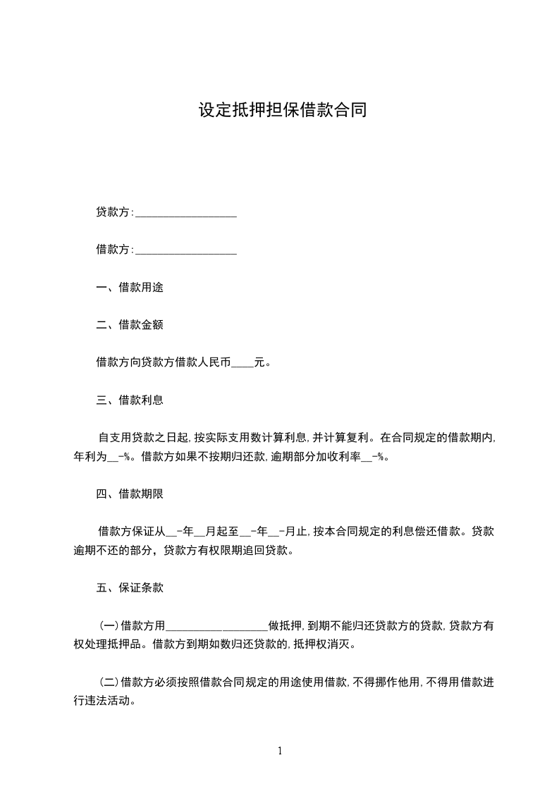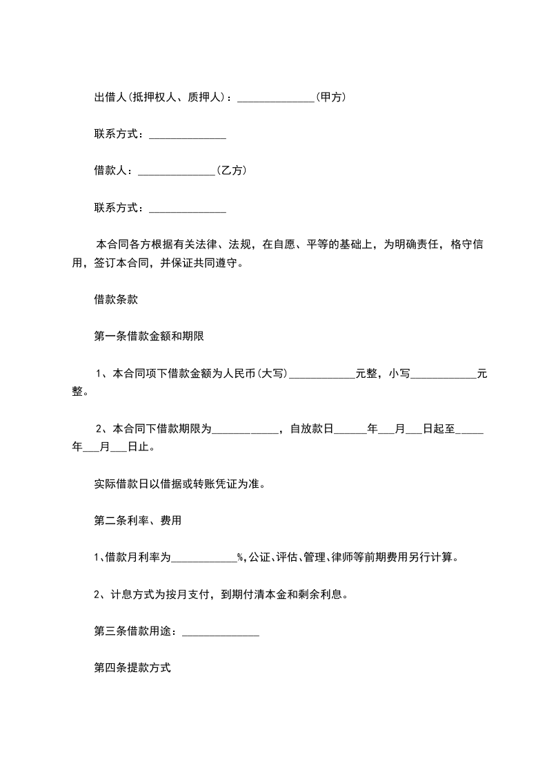 (一)借款方用__________________做抵押,到期不能归还贷款方的贷款,贷款方有权处理抵押品。借款方到期如数归还贷款的,抵押权消灭。