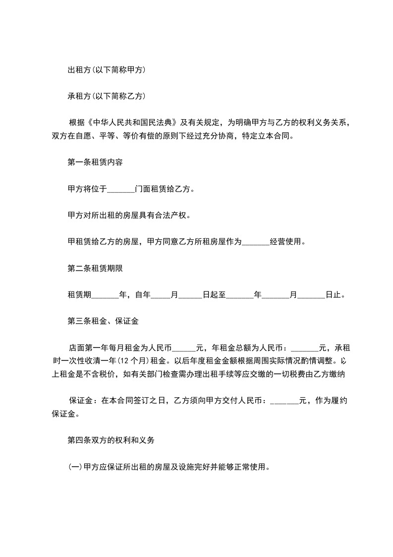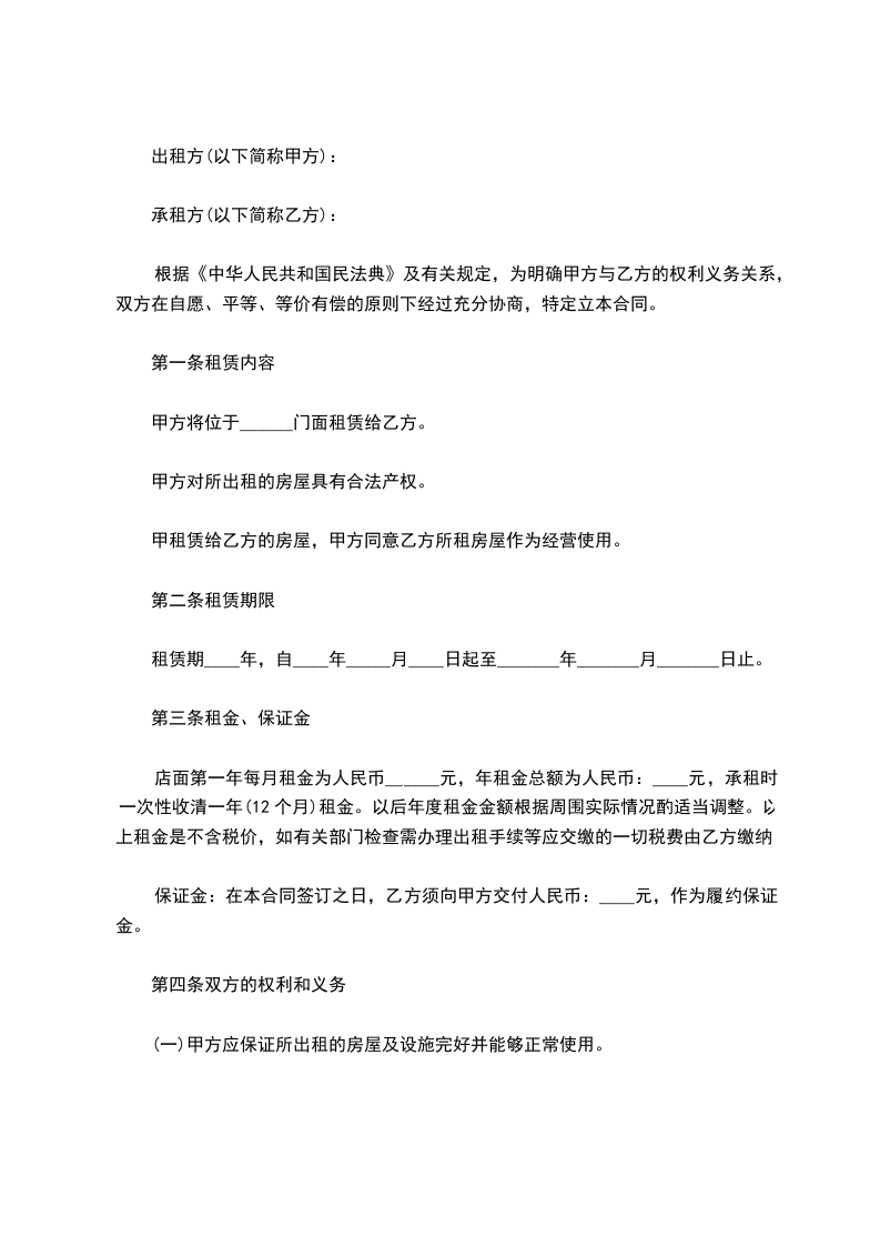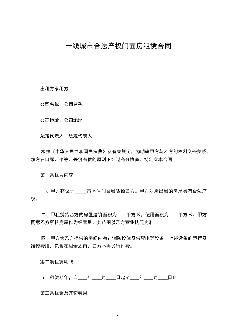 一、甲方将位于 门面租赁给乙方。甲方对所出租的房屋具有合法产权。