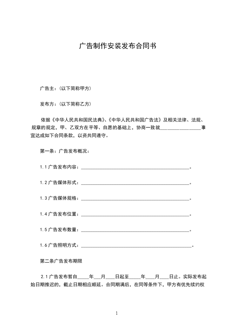 三、在协议时间内工程安装完后,由甲方验收合格后,甲方必须在一个月内一次性结清全部广告发布费。