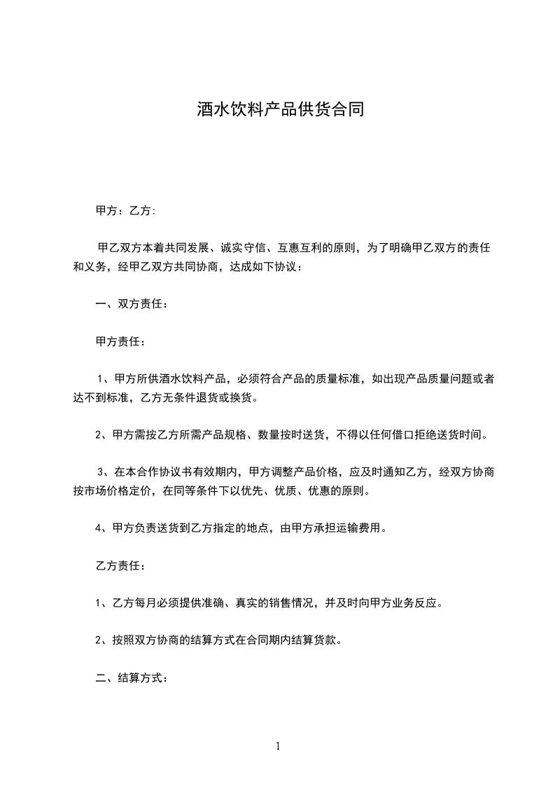 1、甲方所供酒水饮料产品,必须符合产品的质量标准,如出现产品质量问题或者达不到标准,乙方无条件退货或换货。