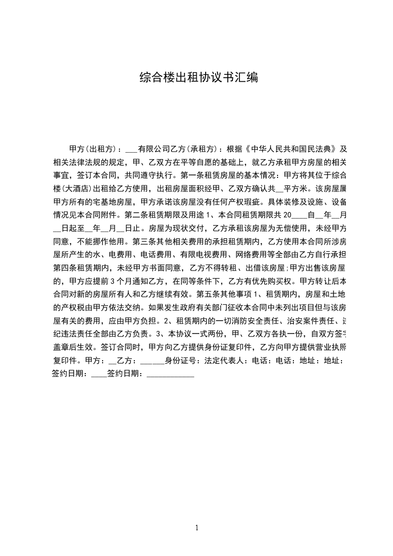 甲方将其位于综合楼(大酒店)出租给乙方使用,出租房屋面积经甲、乙双方确认共 平方米。该房屋属甲方所有的宅基地房屋,甲方承诺该房屋没有任何产权瑕疵。具体装修及设施、设备情况见本合同附件。