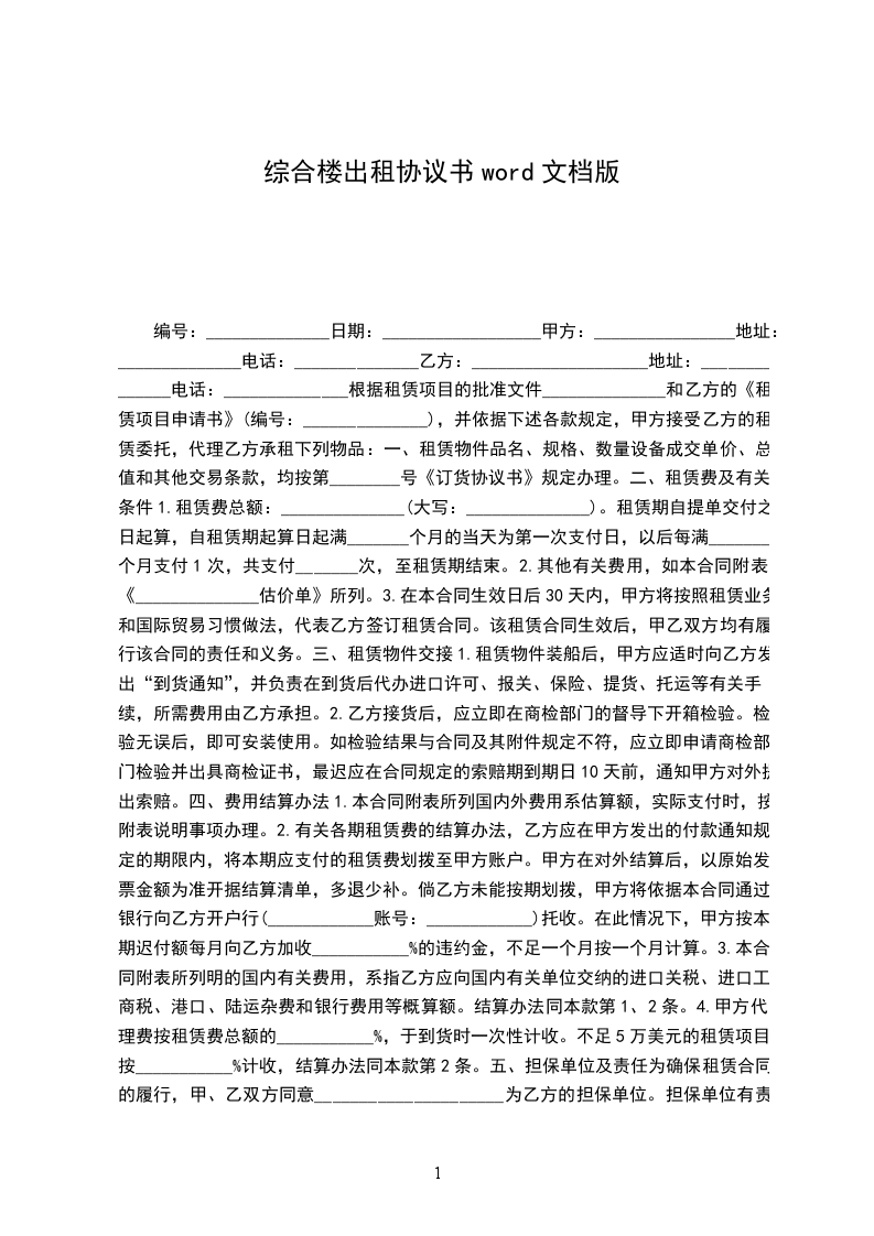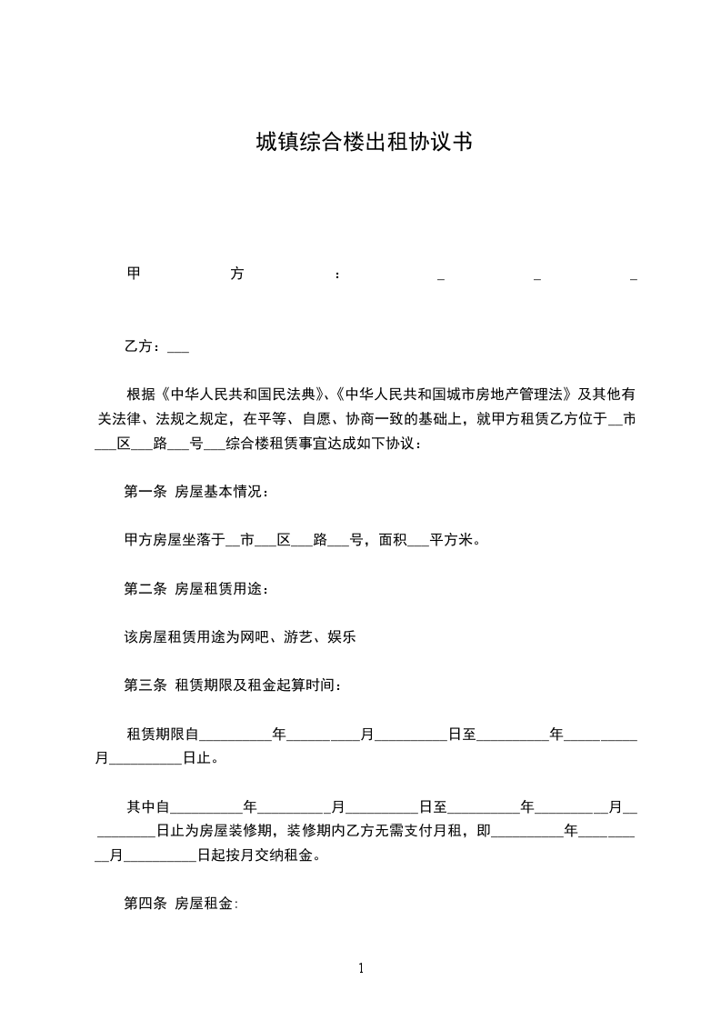第一条 租赁房屋的基本情况: