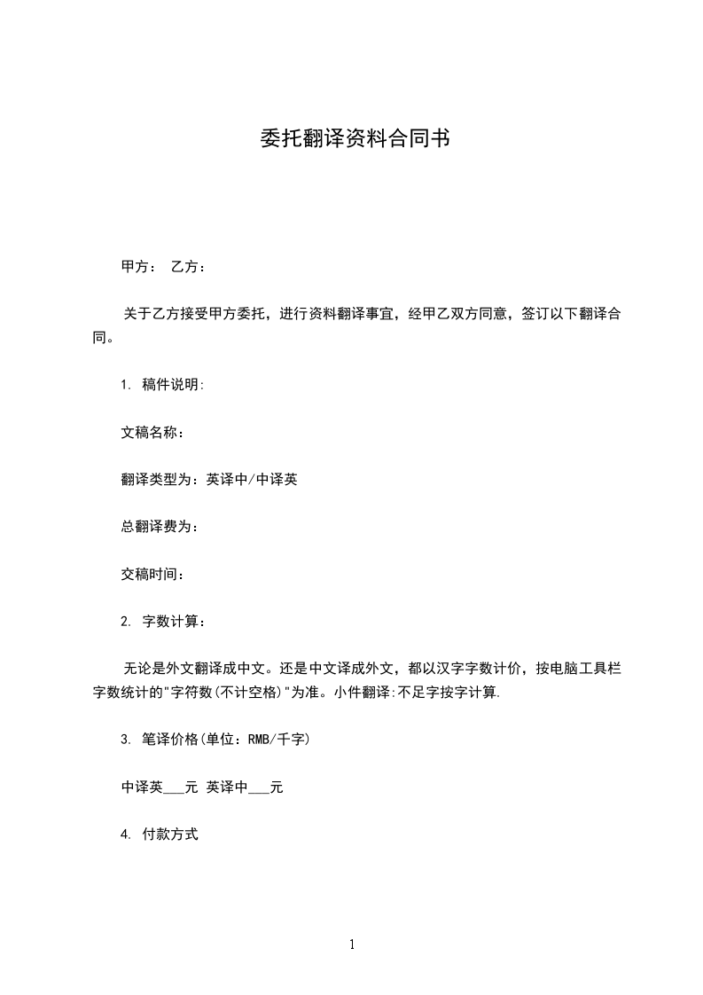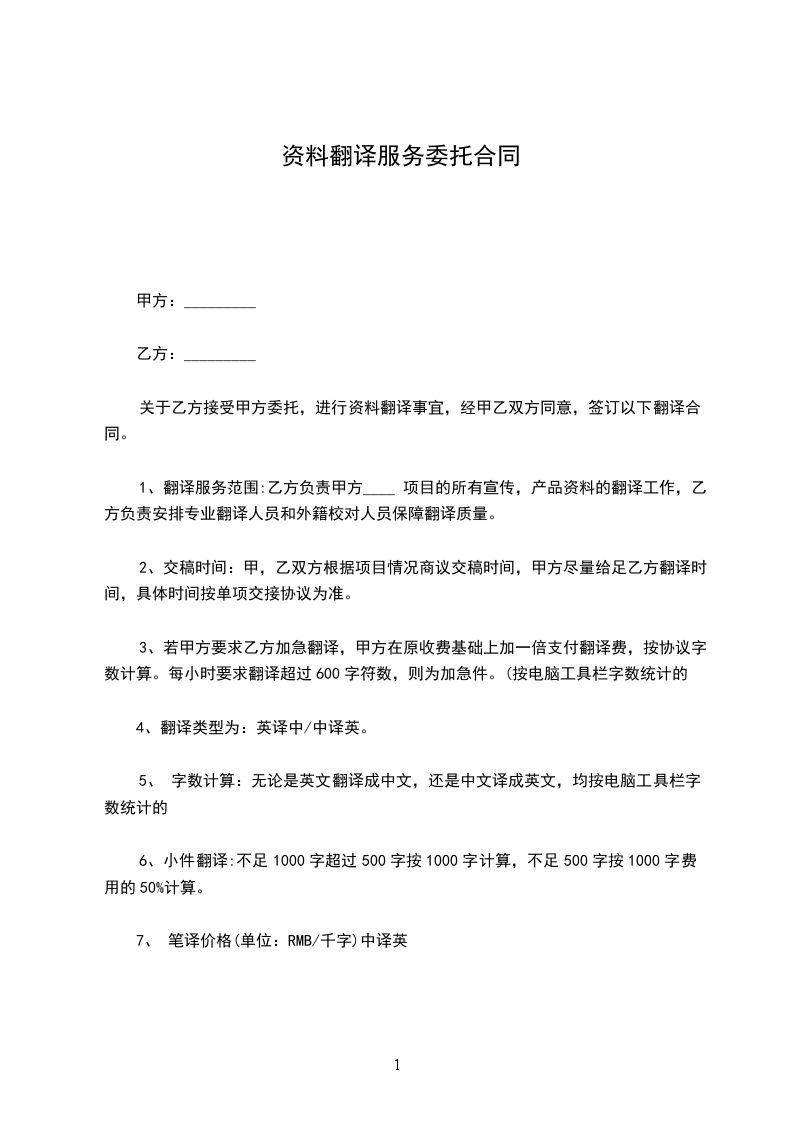 关于乙方接受甲方委托,进行资料翻译事宜,经甲乙双方同意,签订以下翻译合同。