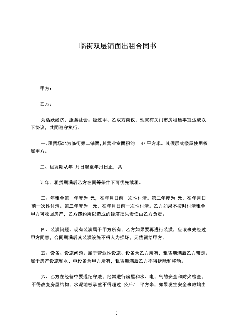 一、租赁场地为临街第二铺面,其营业室面积约47平方米。其假层式楼屋使用权属甲方。