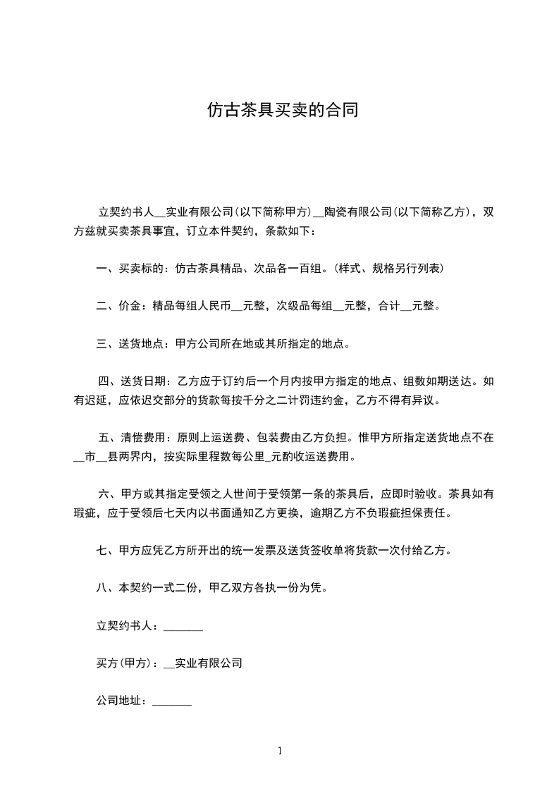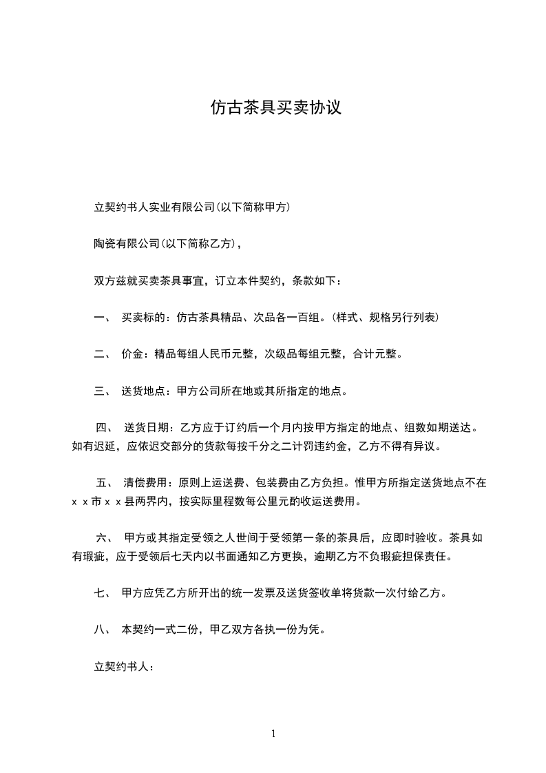 双方兹就买卖茶具事宜,订立本件契约,条款如下:
