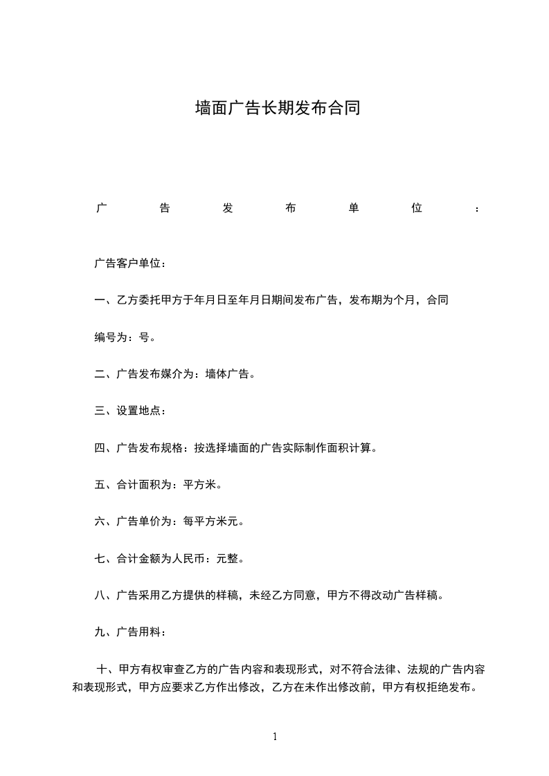甲乙双方本着平等互利之原则,根据《广告法》及有关规定,经双方友好协商,就乙方在______小区幕墙上发布幕墙广告一事签订本合同,并共同遵守。