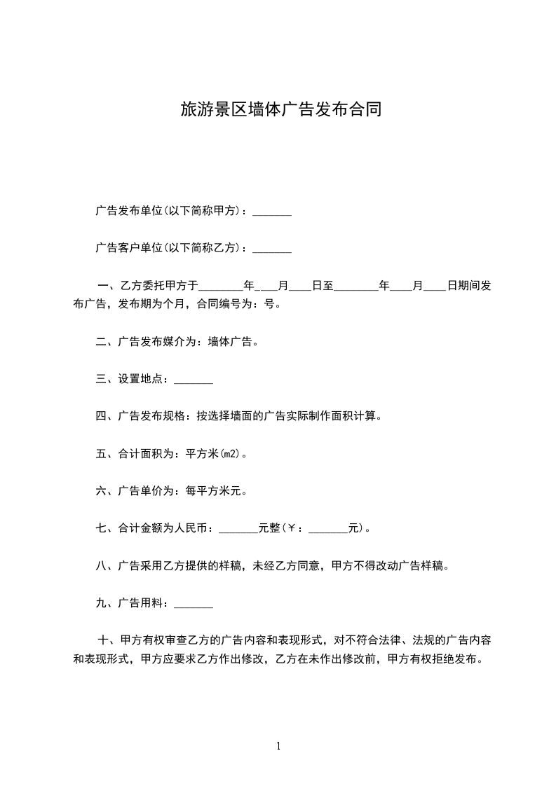 二、发布位置:______市______区______路______号_________小区幕墙___号广告位。