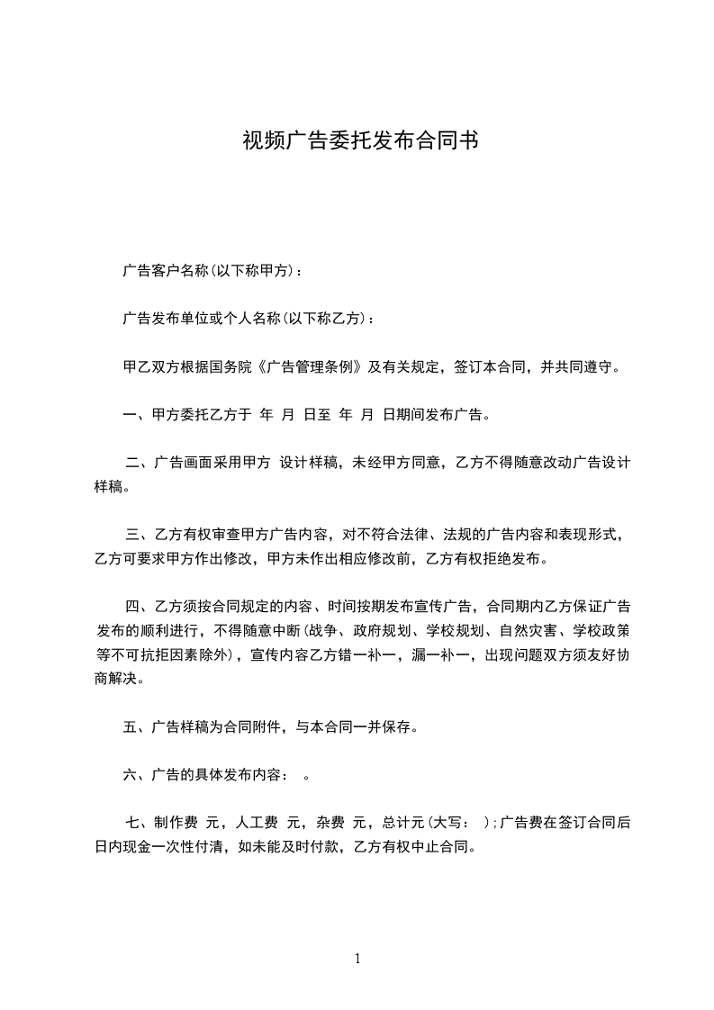 一、甲方委托乙方于 年 月 日至 年 月 日期间发布广告。