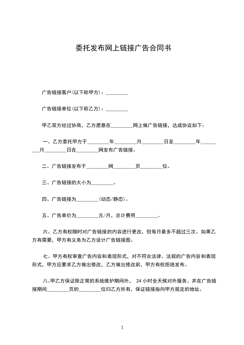 一、乙方委托甲方于_________年_________月_________日至_________年_________月_________日在_________网发布广告链接。