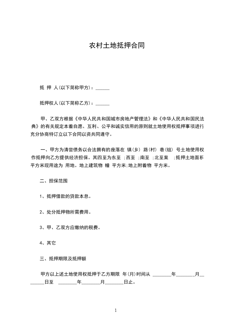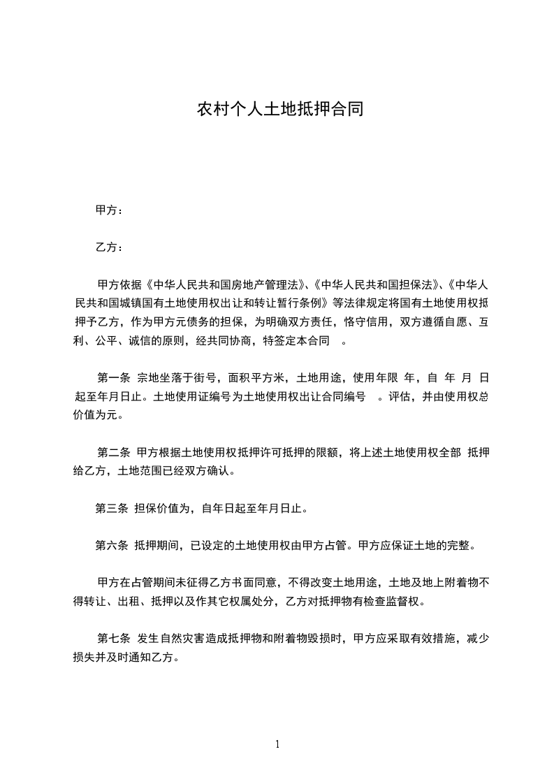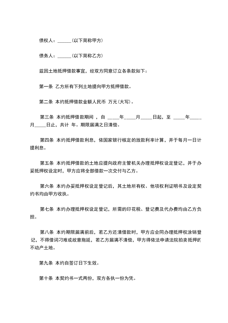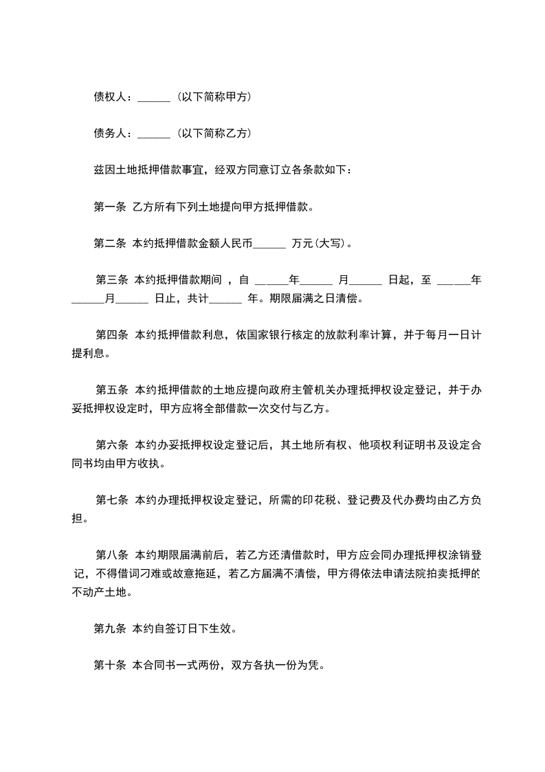 兹因土地抵押借款事宜,经双方同意订立各条款如下: