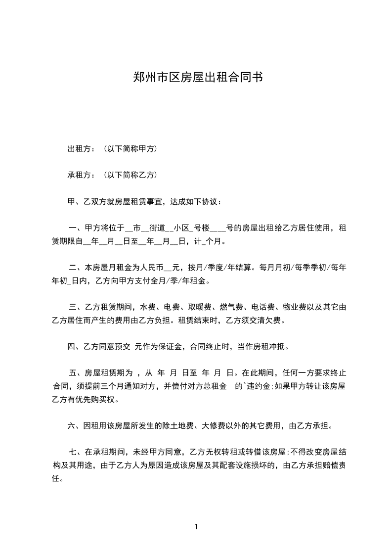 五、房屋租赁期为 ,从 年 月 日至 年 月 日。在此期间,任何一方要求终止合同,须提前三个月通知对方,并偿付对方总租金 的`违约金;如果甲方转让该房屋,乙方有优先购买权。