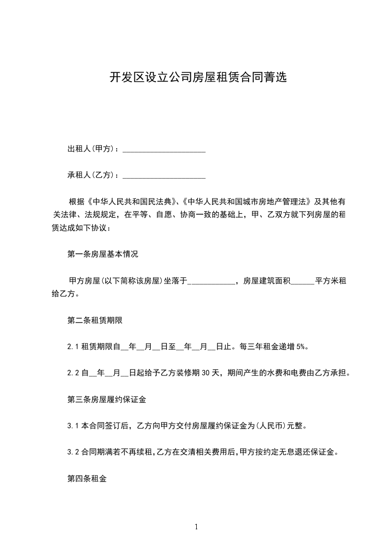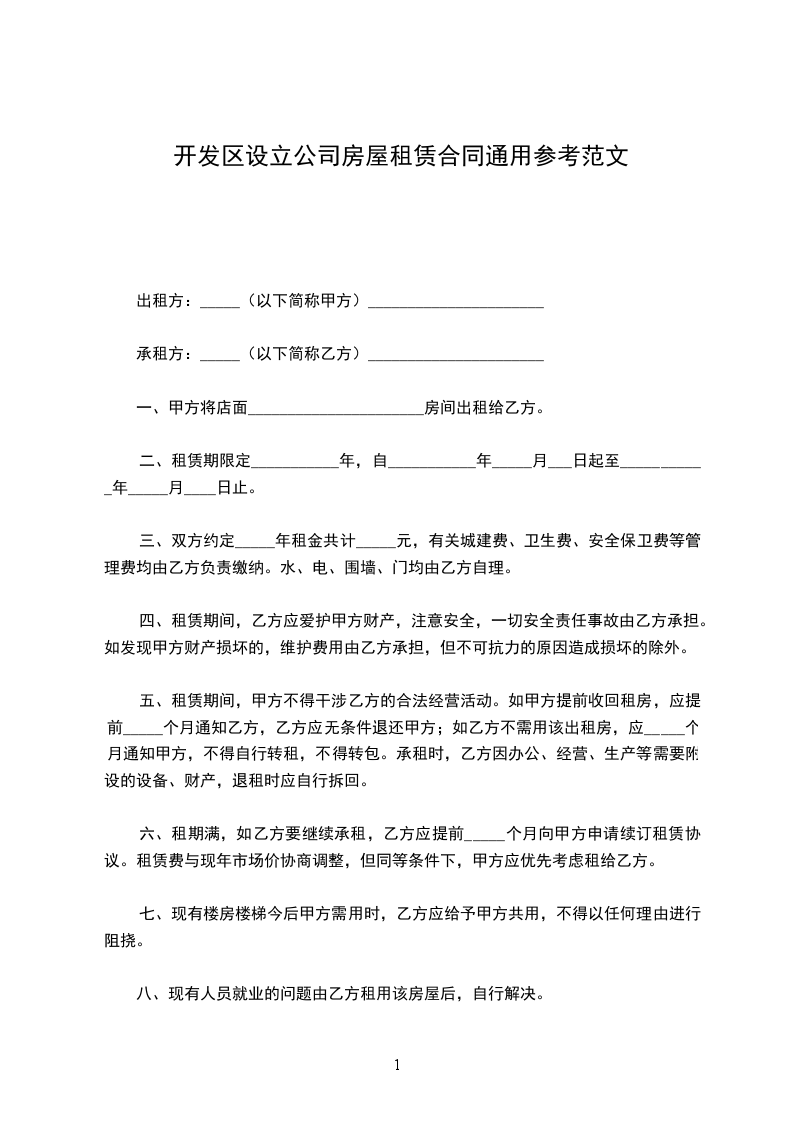 一、甲方同意供给乙方经营用房____平方米,用于该公司经营之用,该房屋坐落于____.