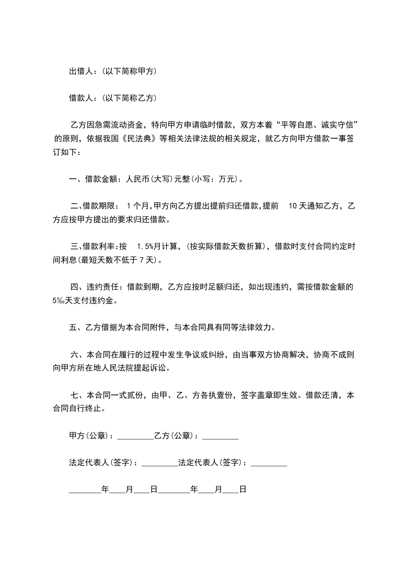 同。如一方当事人要求变更或解除合同,应在__日内通知另一方当事人,并达成书面协议。本合同变更或解除后,借款方占用的借款和应付的利息仍应按本合同的规定偿付。