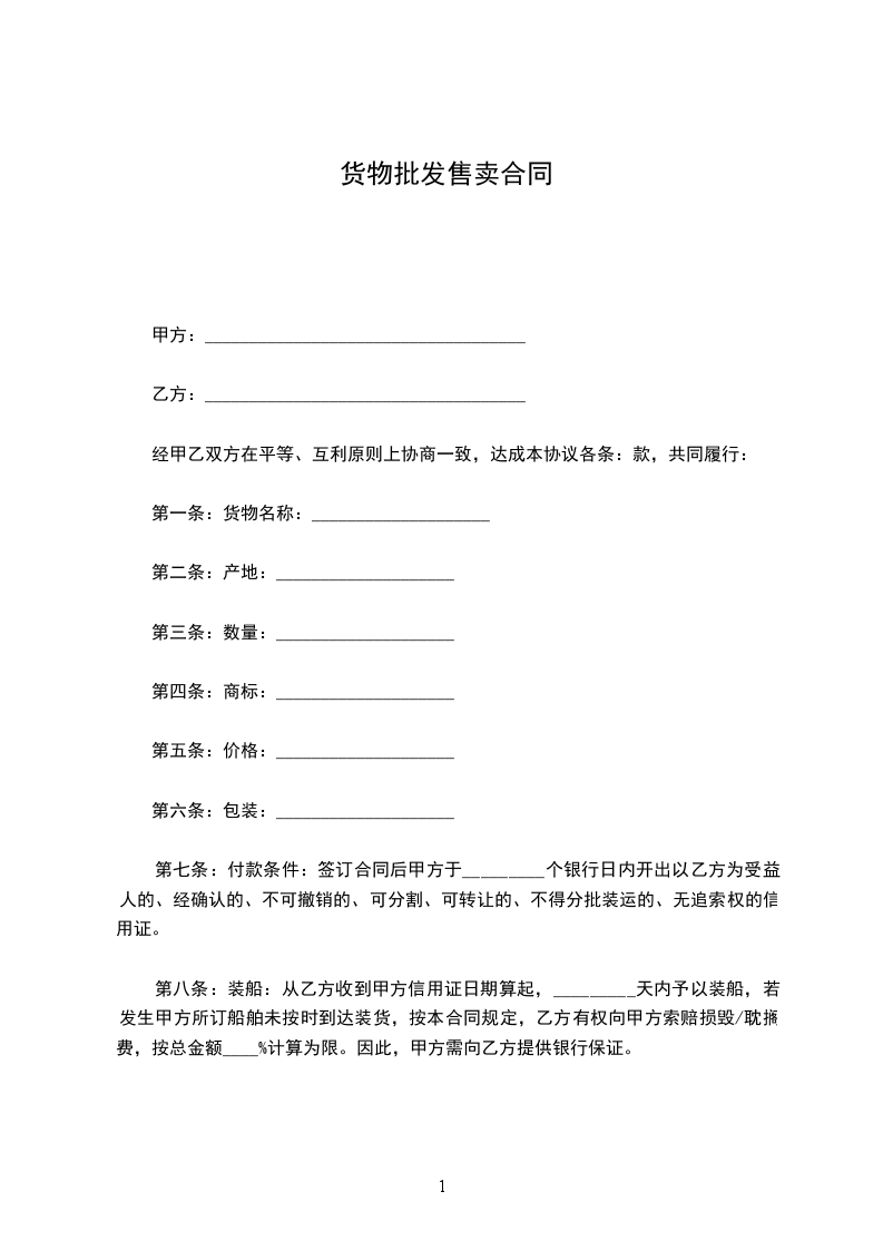 1、乙丙双方经友好协商,同意由乙方向丙方购买本协议及本协议所涉及合同项下的货物;且