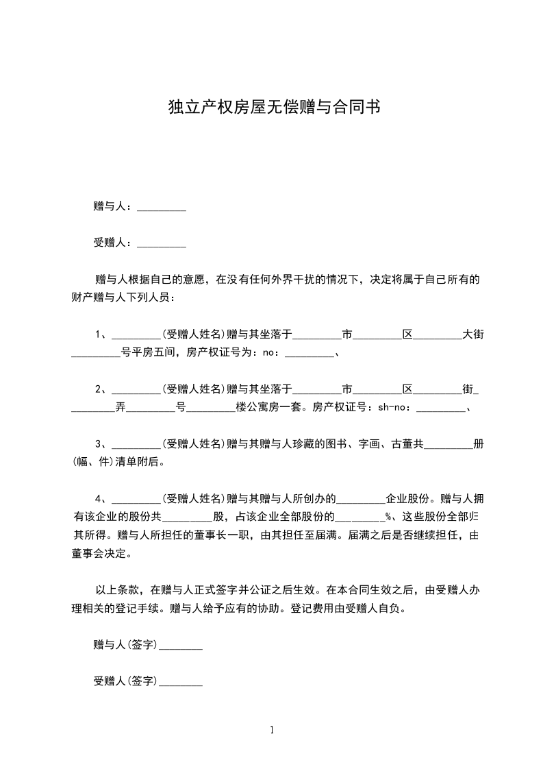 (二)赠与房产的所有权证证号为:_________。