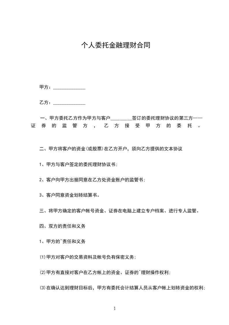一、乙方委托甲方代理操作乙方在________________(证券营业部)开设的资金账户,资金账号为_________________ 。交易密码甲乙双方共享,乙方可以查询,但不能操作。