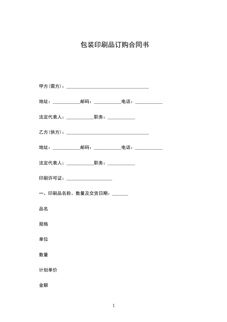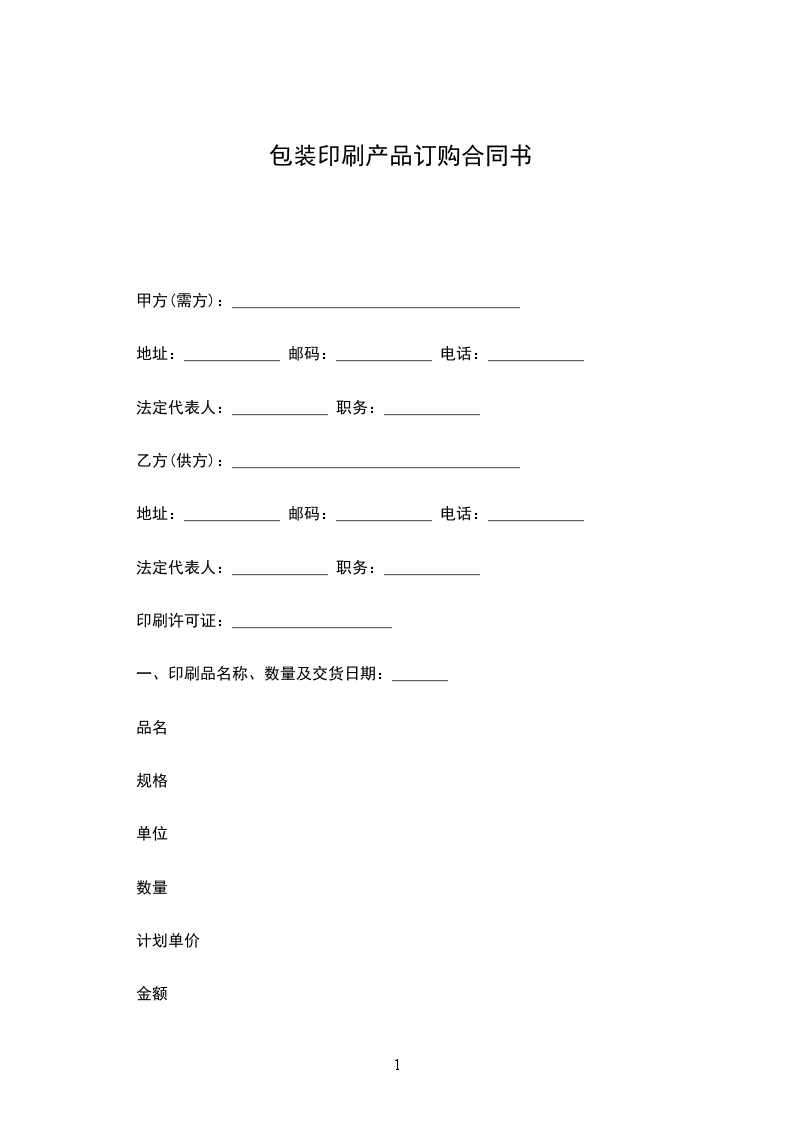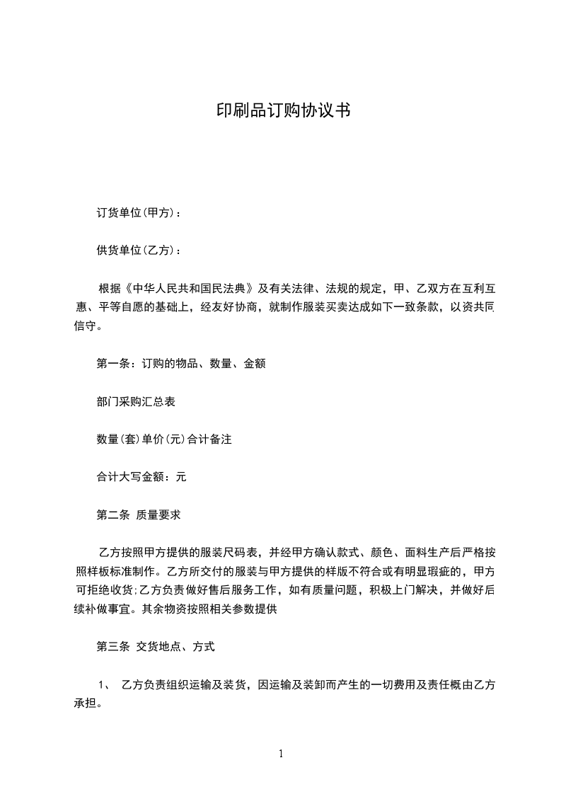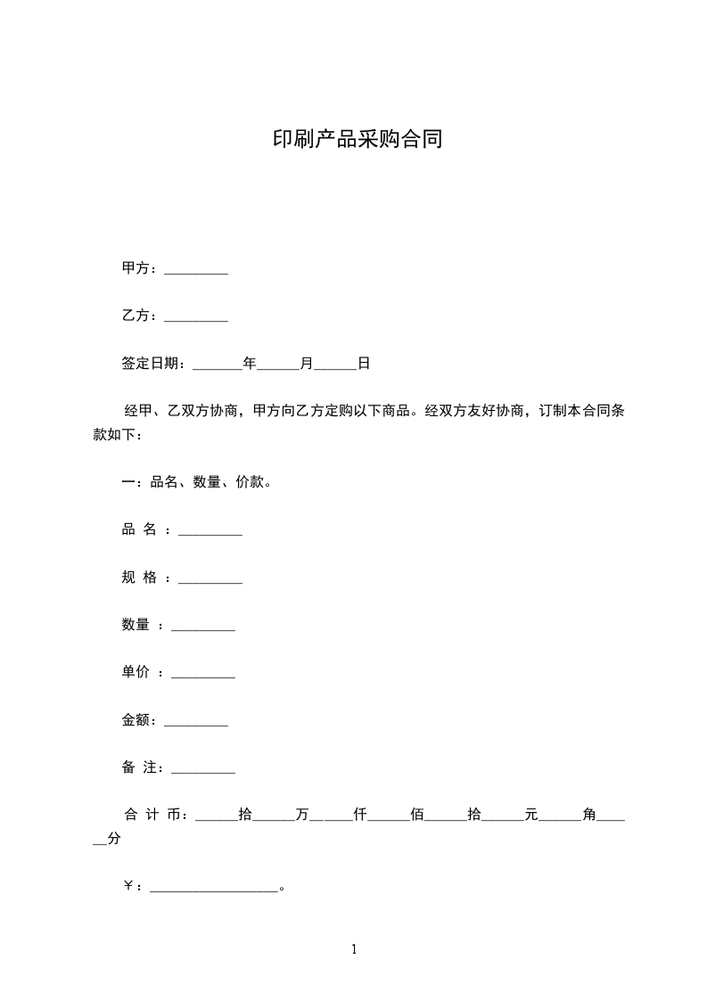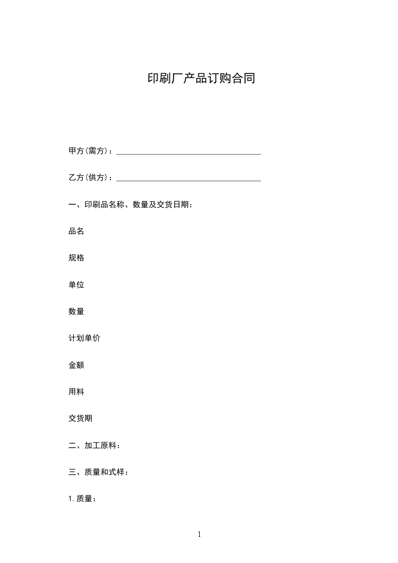 兹因甲方生产需要向乙方订印下列印刷品,经双方协商同意订立合同如下: