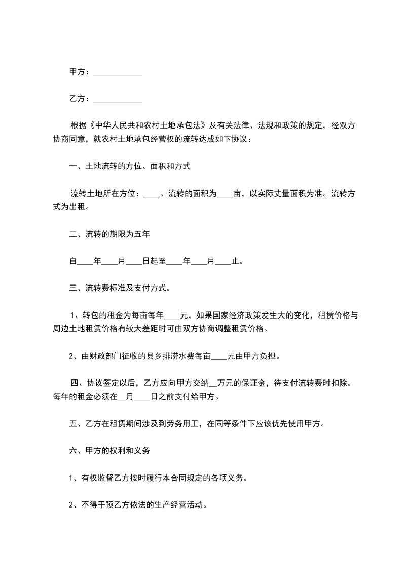 第五条;乙方有权监督和维护丙方的合法权益。保证水利的供应,道路畅通。创造条件为租赁方提供生产经营服务。