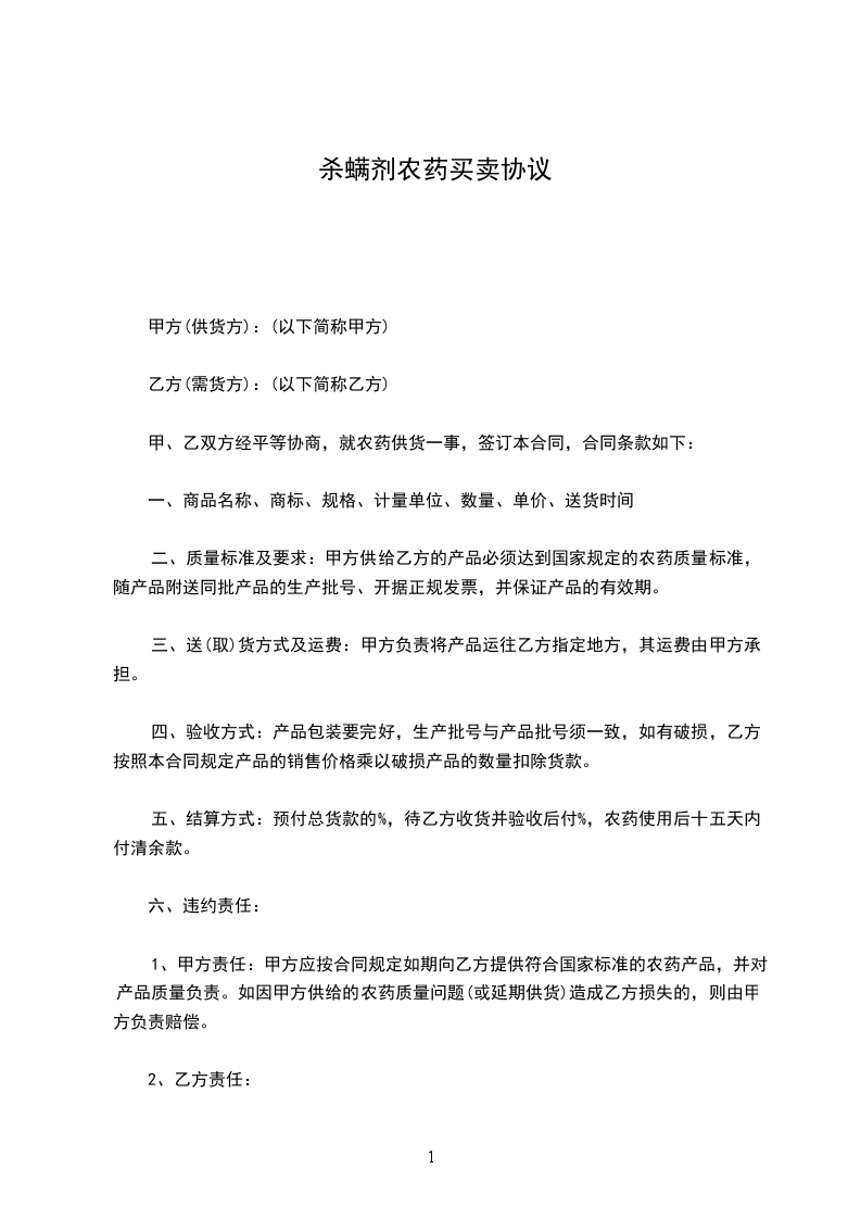 杀螨剂农药买卖协议