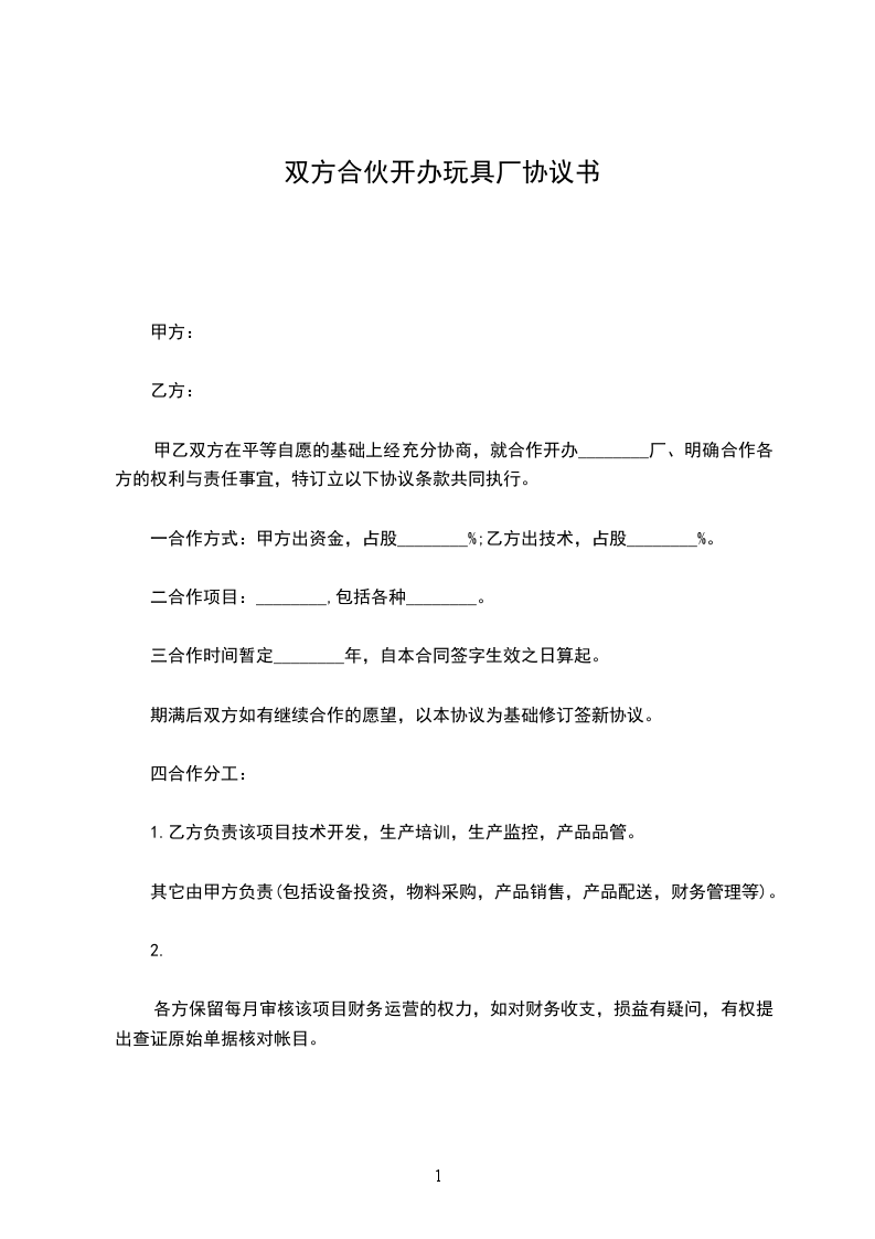 甲乙双方在平等自愿的基础上经充分协商,就合作开办________厂、明确合作各方的权利与责任事宜,特订立以下协议条款共同执行。