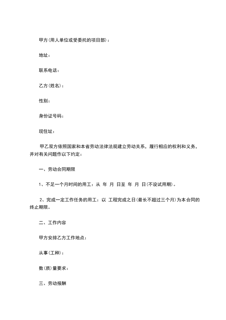 1.不足一个月时间的用工:从_________年_________月_________日至_________年_________月_________日(不设试用期)。