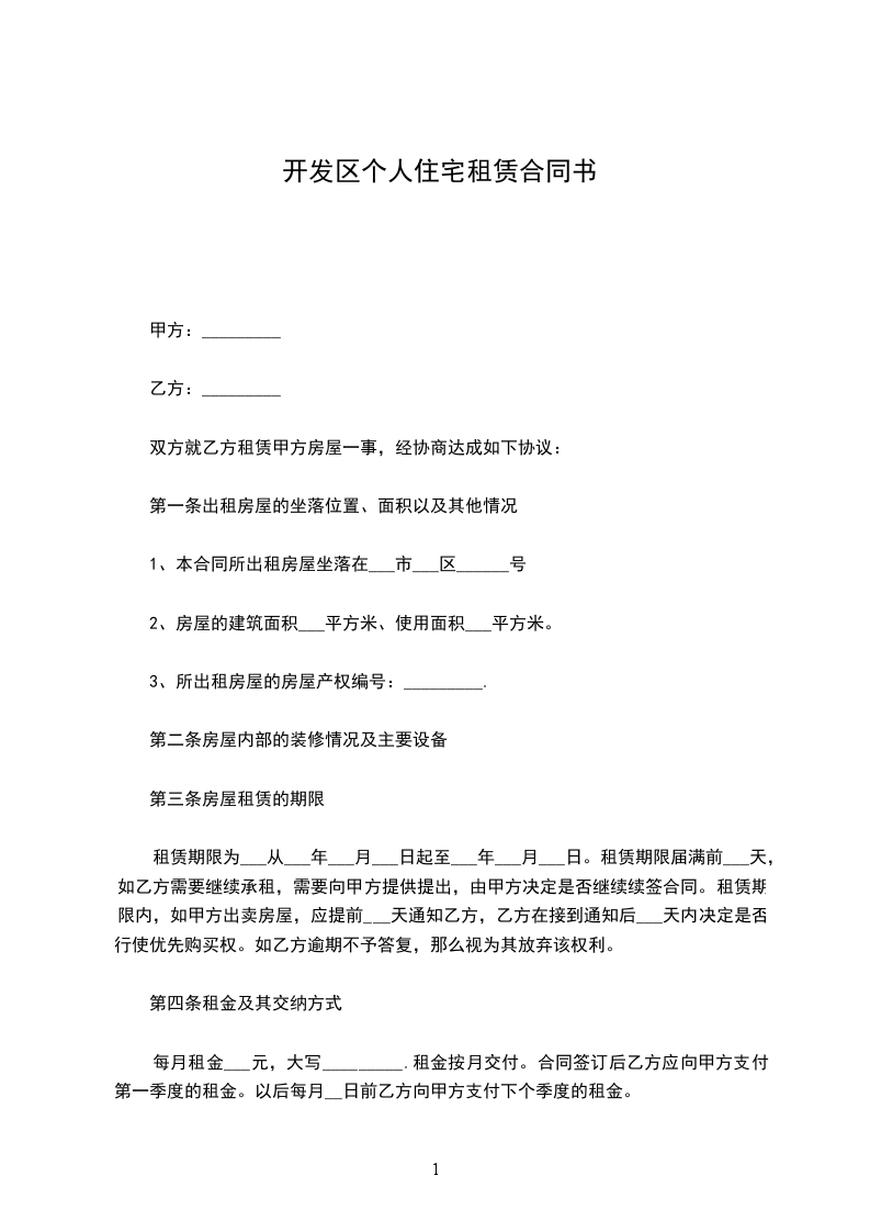 1、本合同所出租房屋坐落在___市___区______号