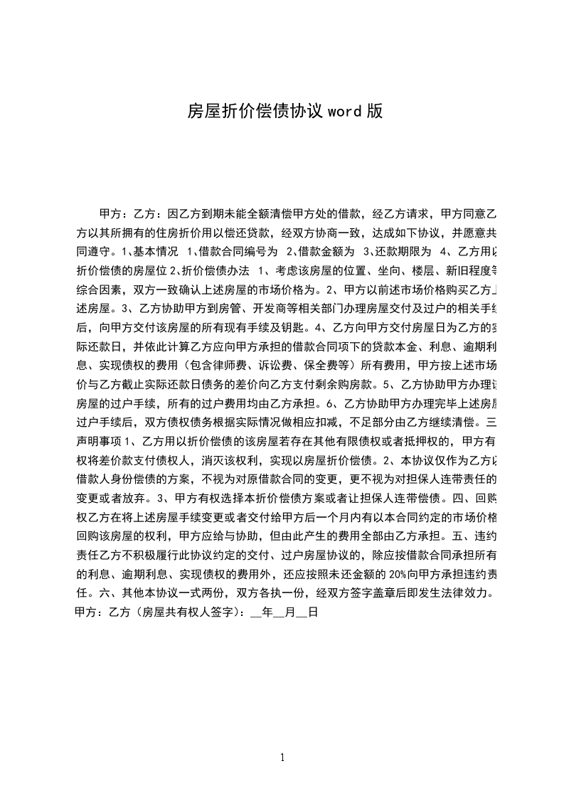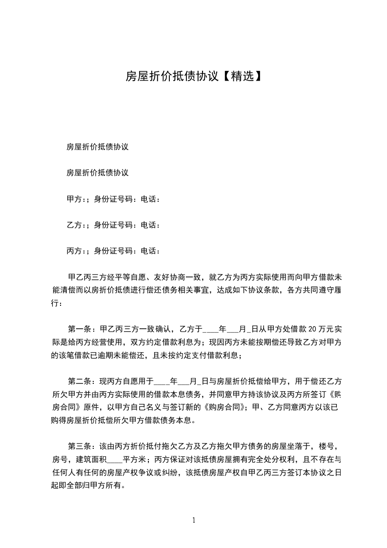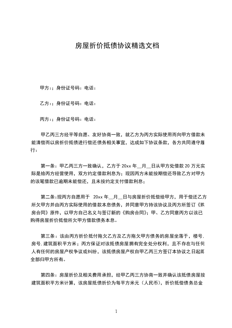 根据《中华人民共和国民法典》及相关法律规定,甲、乙双方在平等、自愿的基础上,为明确双方权利义务,就甲方以其安置房屋向乙方折价偿还到期债务的相关事宜签订本合同,以资双方共同信守执行:
