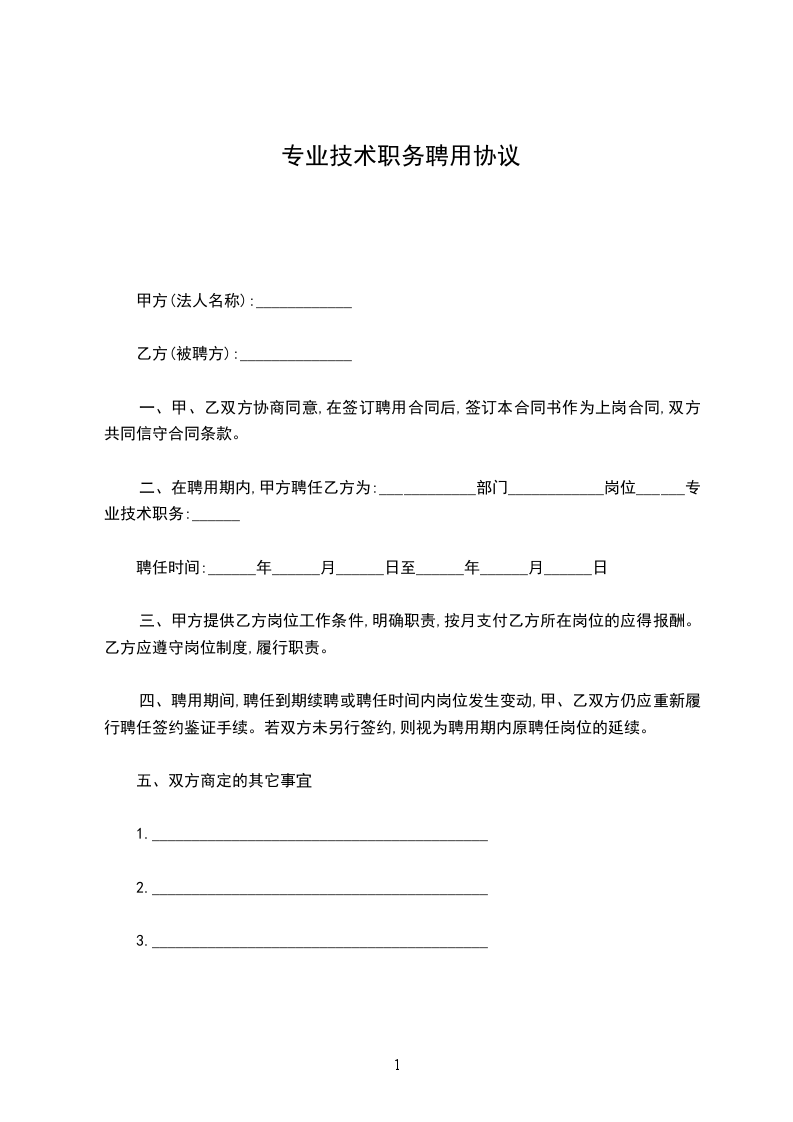 二、在聘用期内,甲方聘任乙方为:____________部门____________岗位______专业技术职务:______