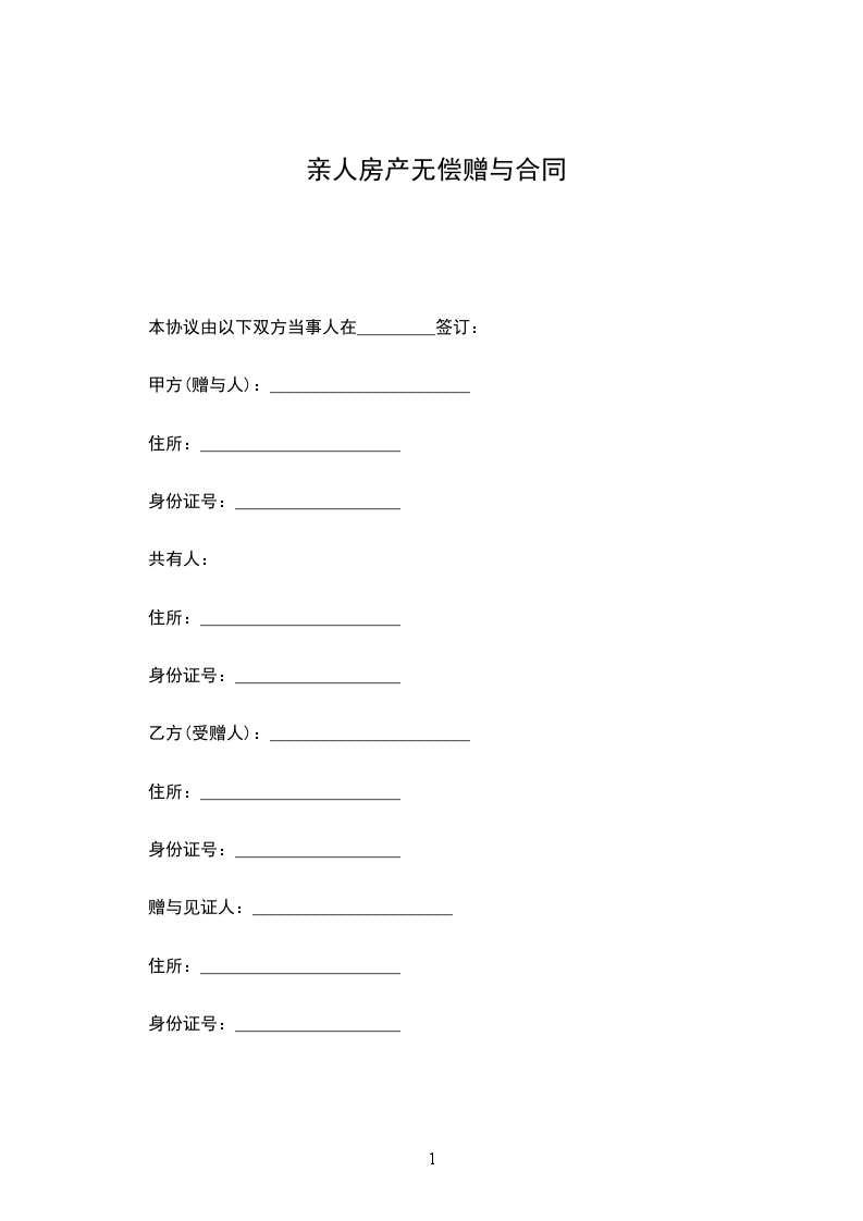 甲方(赠与人):______________ 乙方(受赠人):______________