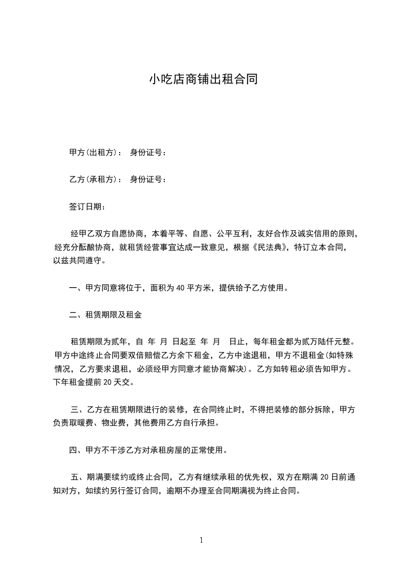 乙方(承租方): 身份证号: