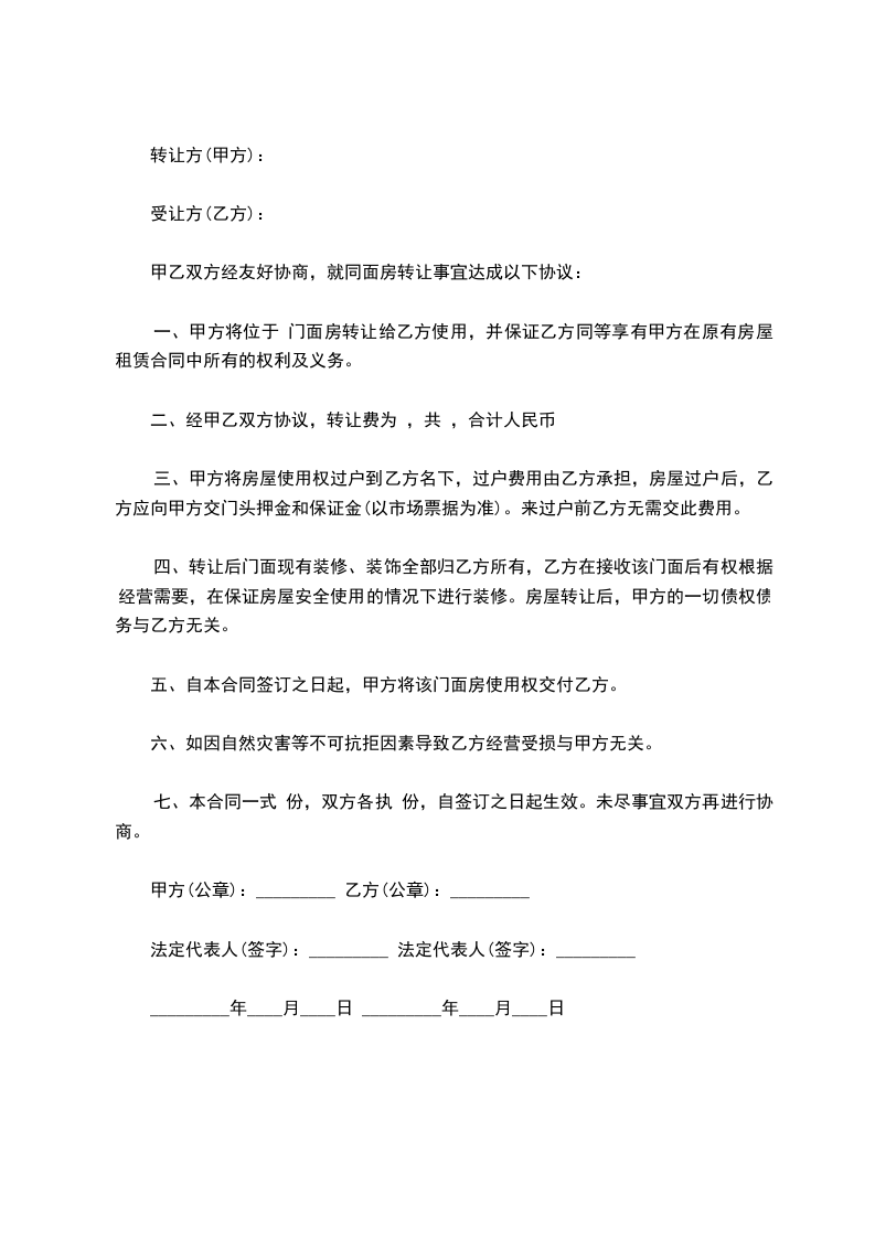 转让门面定于_____年_____月_____日正式交接。