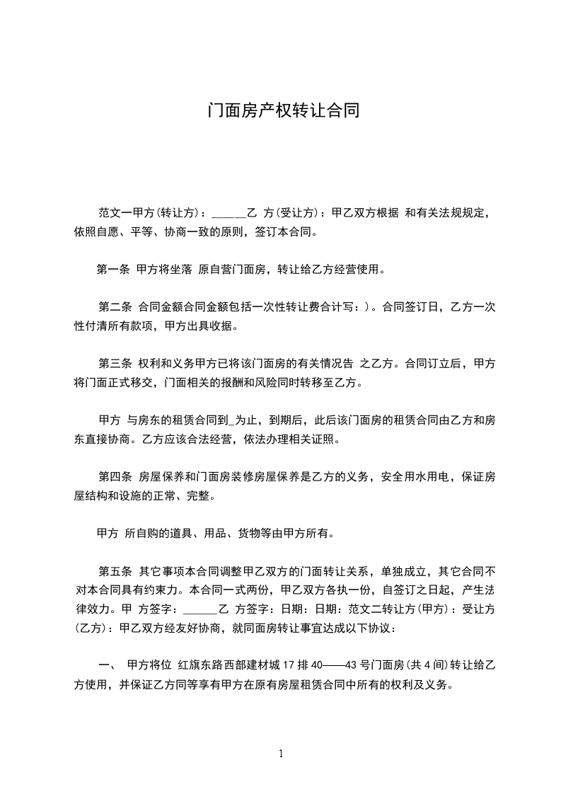 一、转让门面