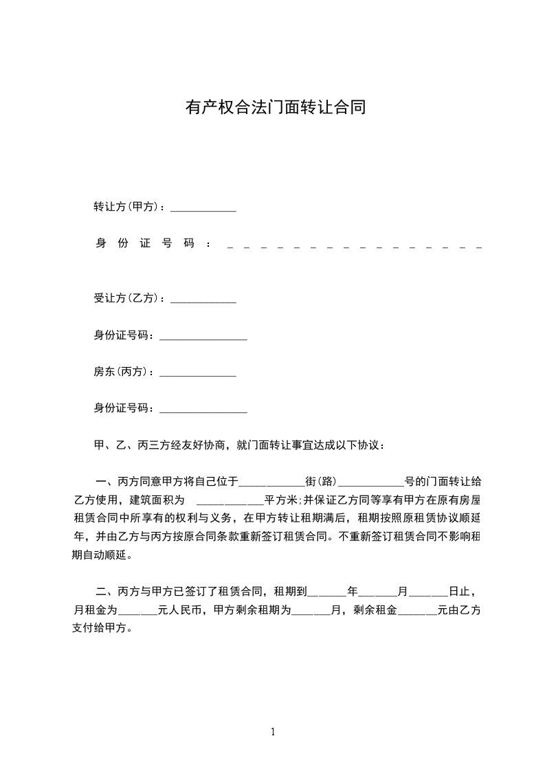 转让方(甲方)_________身份证号码__________________