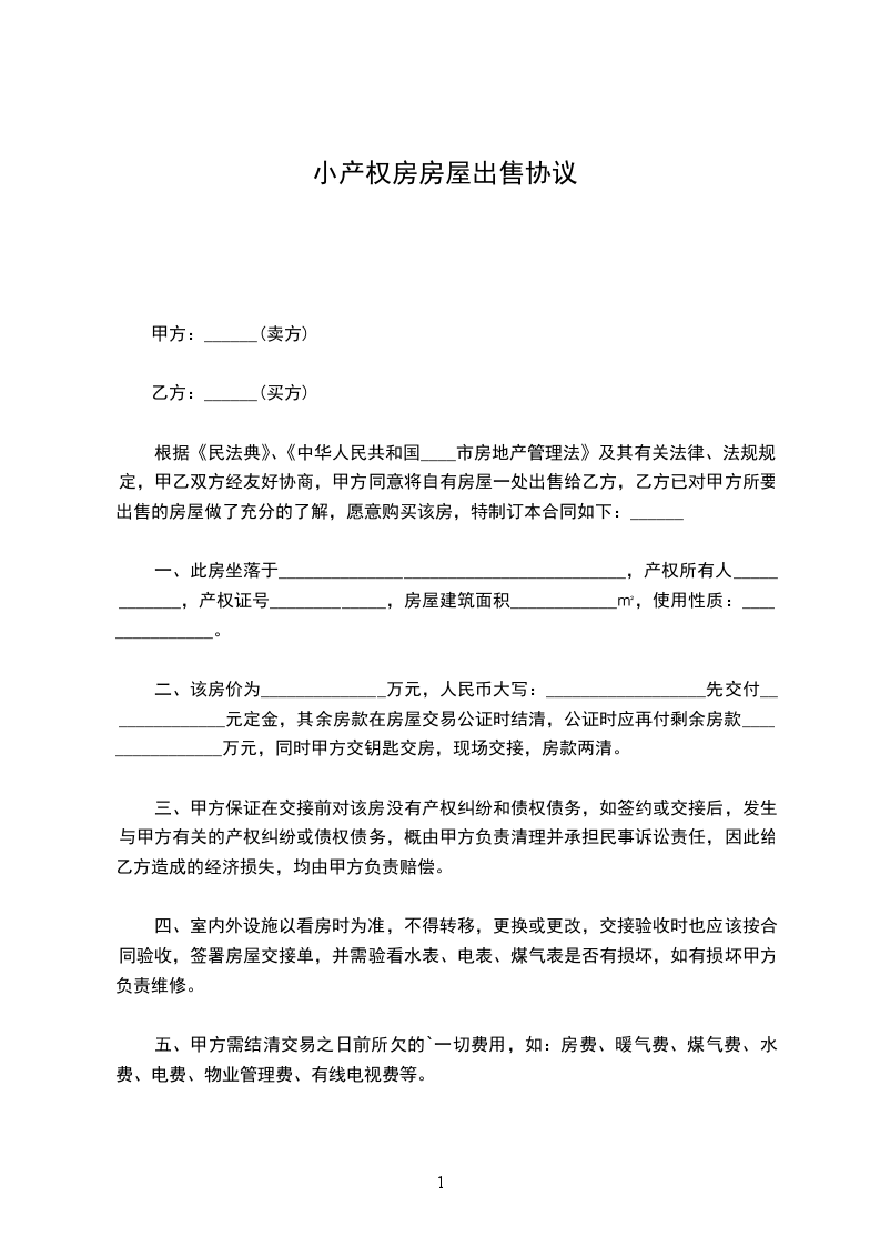 1、甲方向乙方出售下列房屋: