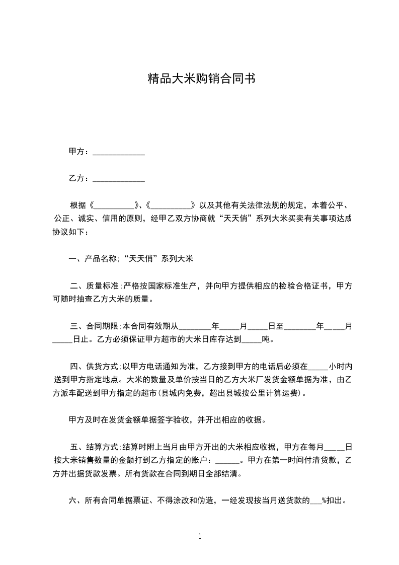 甲、乙双方本着平等、互惠、互利、共同发展的原则,就大米购销事宜达成如下协议:
