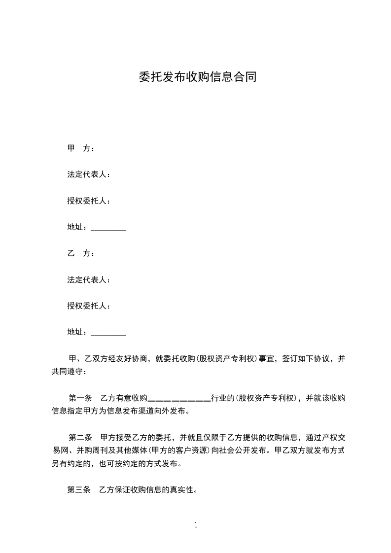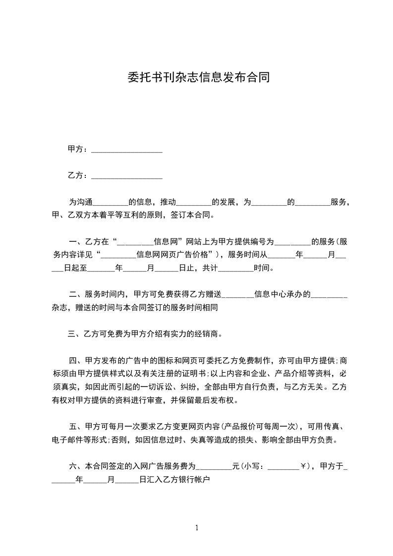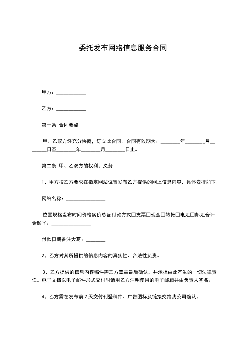 一、乙方委托甲方于_______年______月______日至_______年______月______日期间发布信息