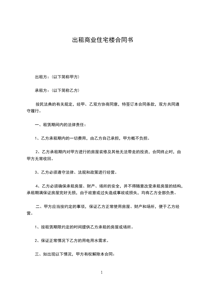 若甲方确需解除合同的,也须提前一个月向乙方下达通知,补偿乙方一个月的租金锻造为违约金后合同解除。