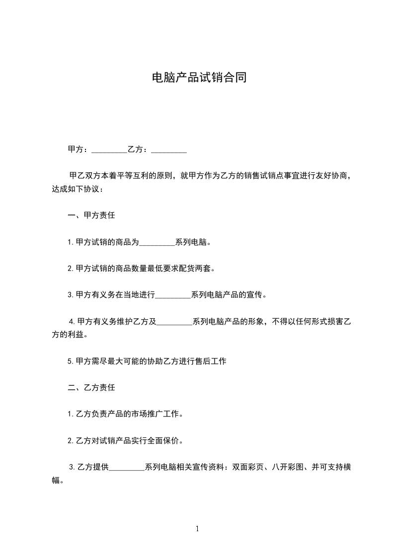 三、注意事项 甲方成功完成试销,并有意向成为乙方在甲方所在地的_________电脑加盟商,具体事宜再作商谈。