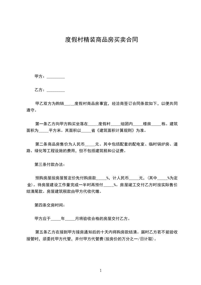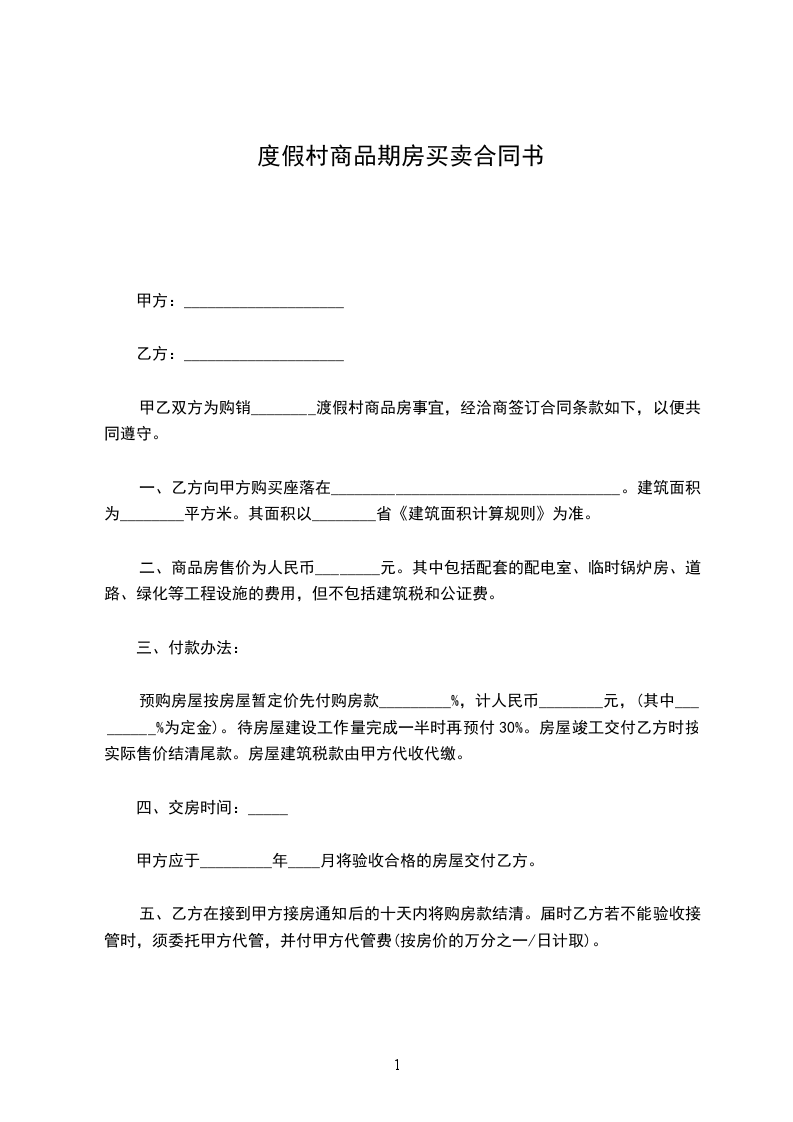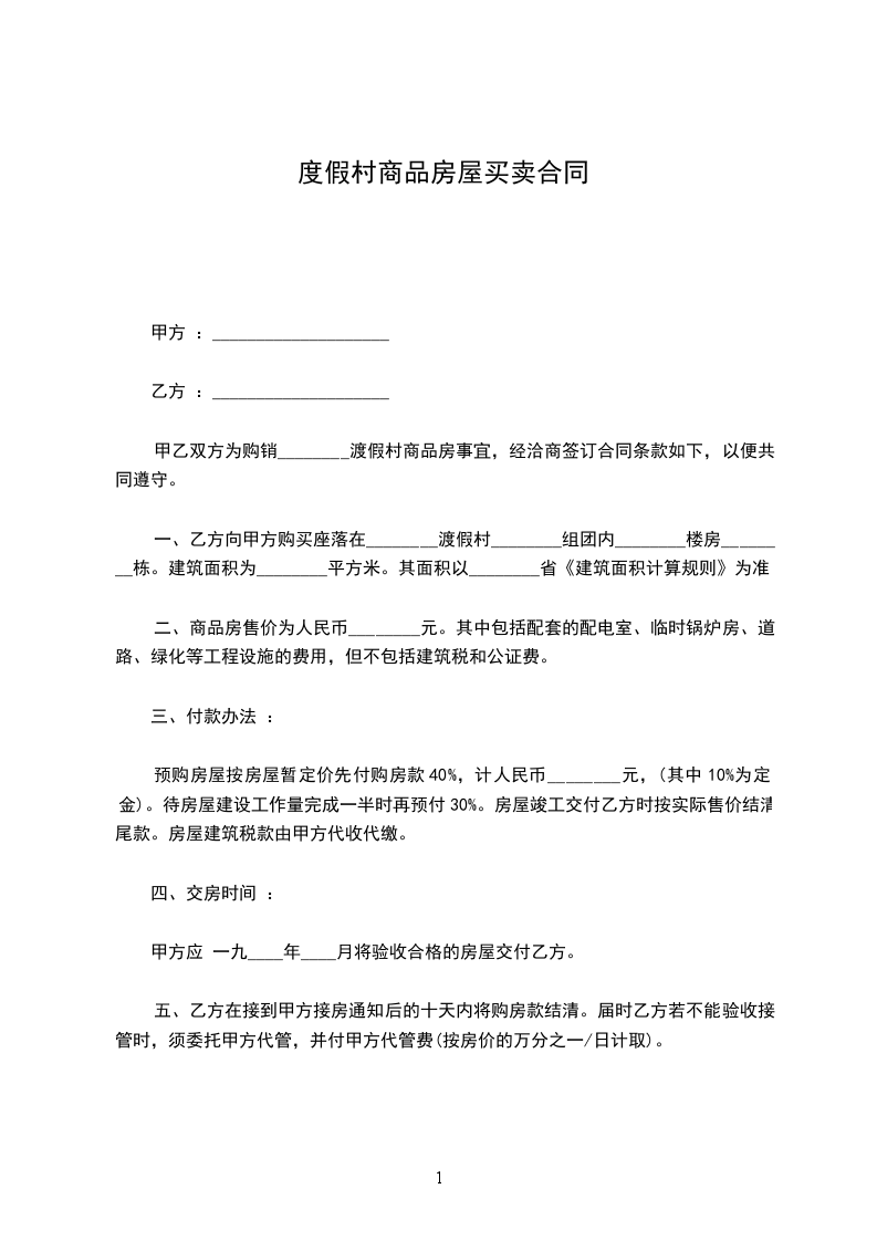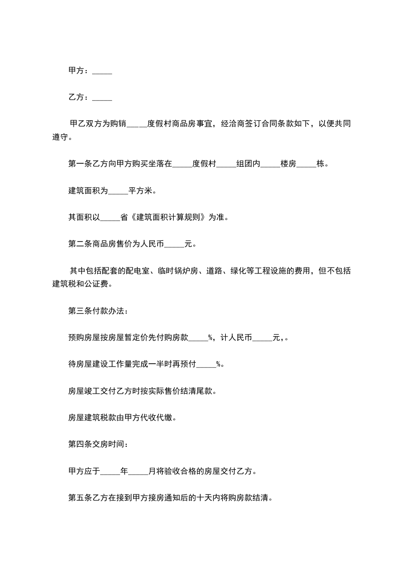 一、乙方向甲方购买座落在_________渡假村_________组团内_________楼房_________栋。