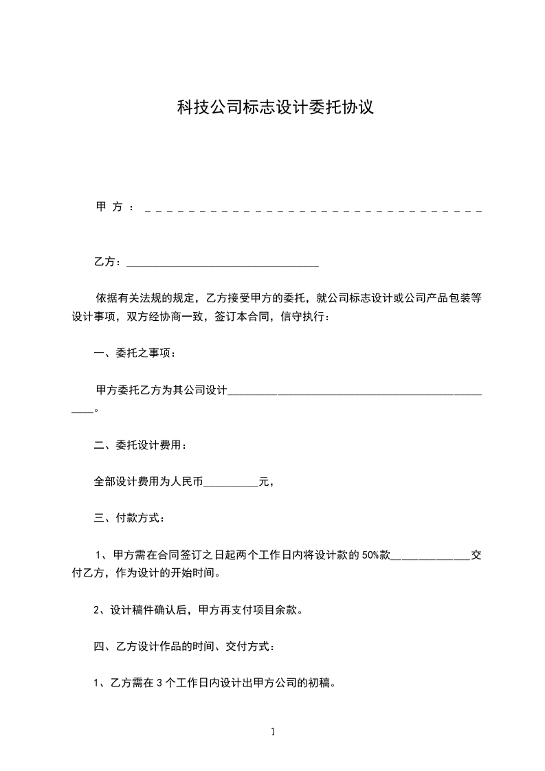甲方委托乙方为其公司设计__________________________________________________。