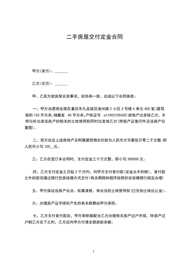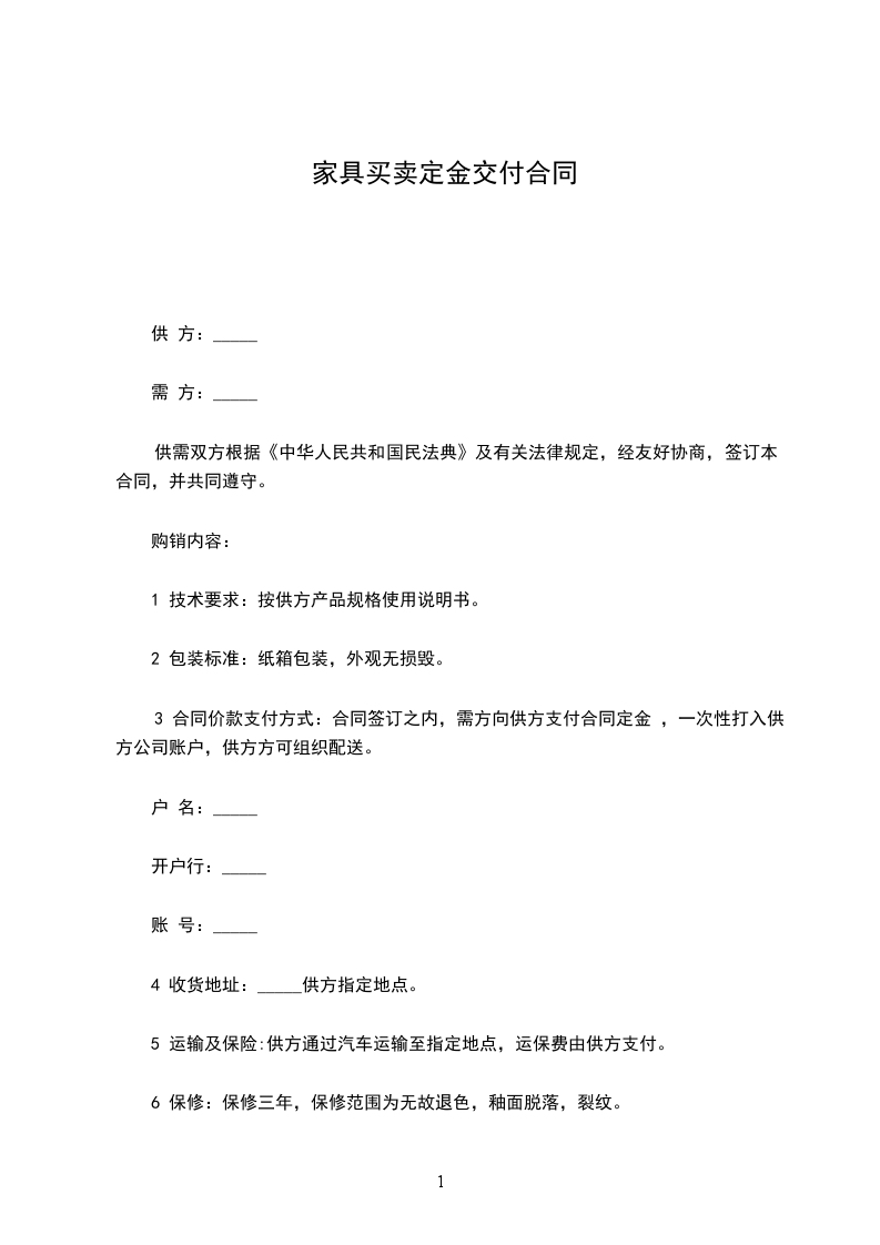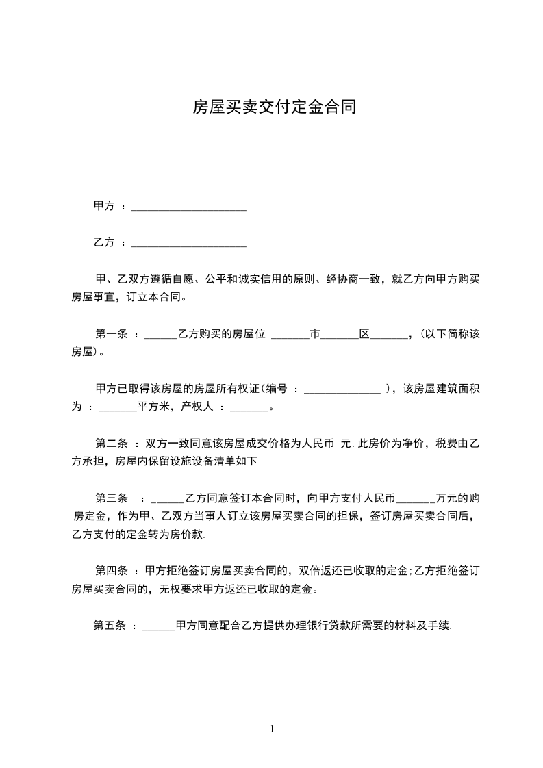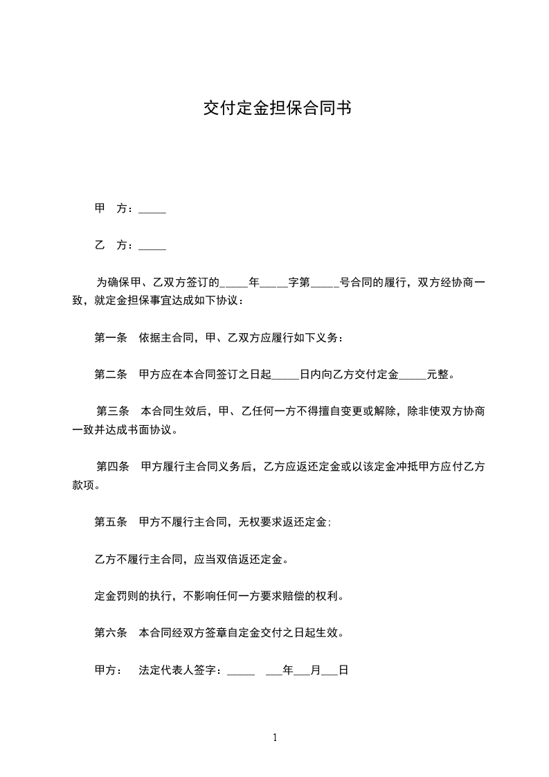 第二条 甲方应在本合同签订之日起_____日内向乙方交付定金_____元整。