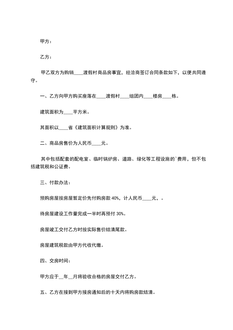 甲乙双方为购销____渡假村商品房事宜,经洽商签订合同条款如下,以便共同遵守。