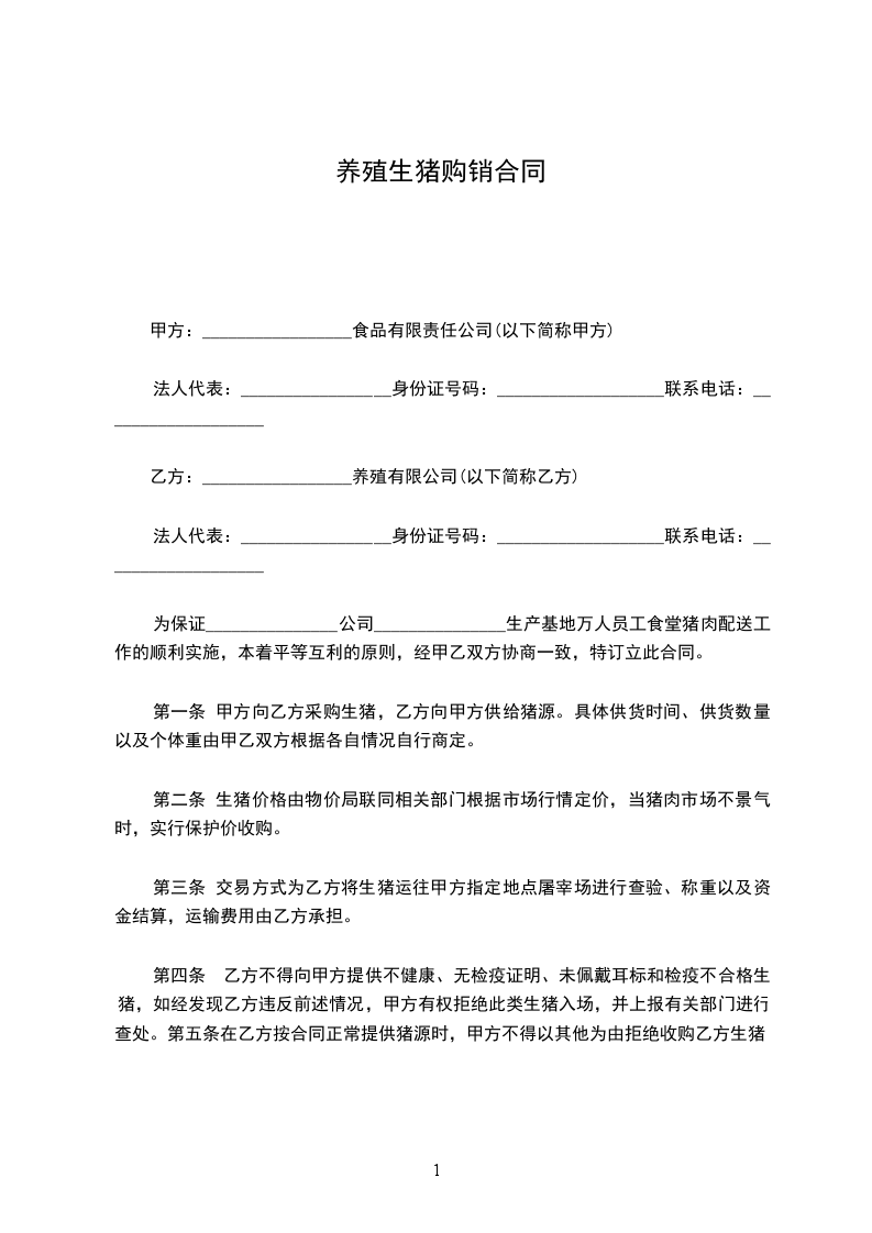 第一条 甲方向乙方采购生猪,乙方向甲方供给猪源。具体供货时间、供货数量以及个体重由甲乙双方根据各自情况自行商定。