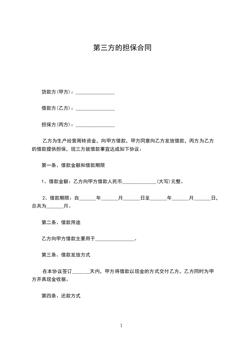第五条合同收效及停止 本合同一式三份,由甲、乙、丙三方各执一份,经甲、乙两边及乙方确保人盖章签字后收效。