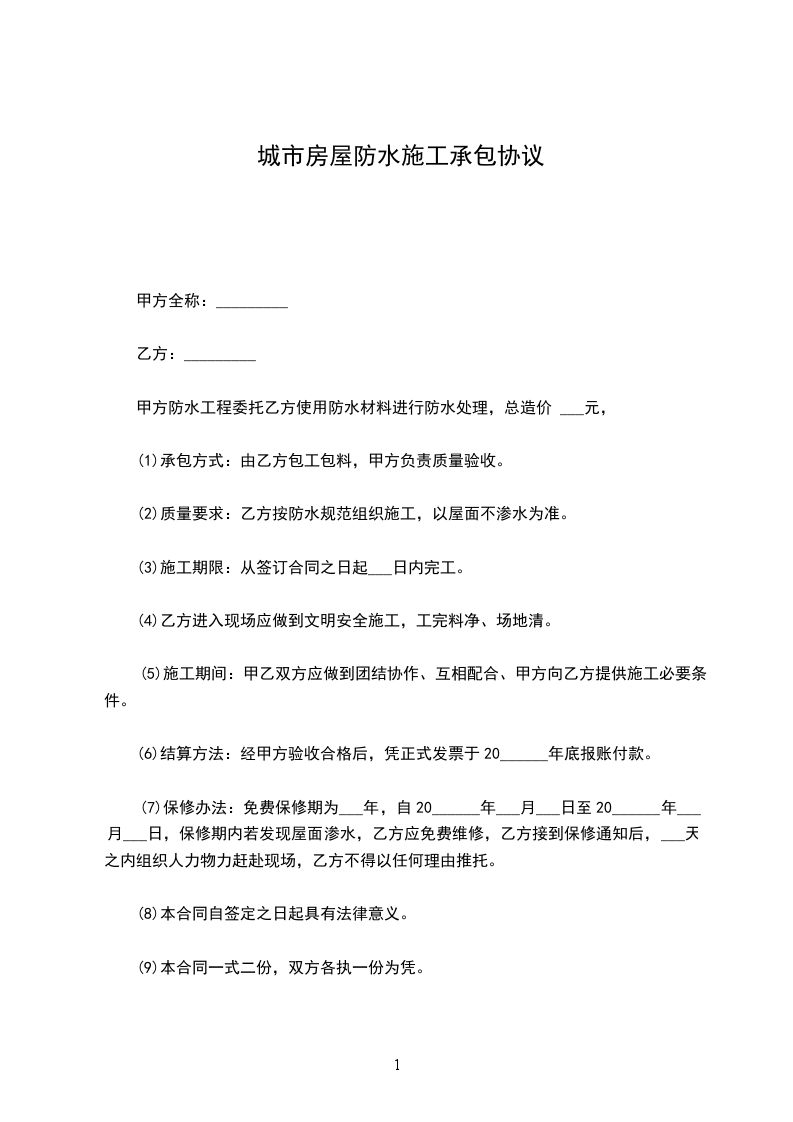 7、保证质量,做到节约用料,如在施工过程中,遇到人力不能抵抗的自然灾害,造成损失,乙方不负其责。