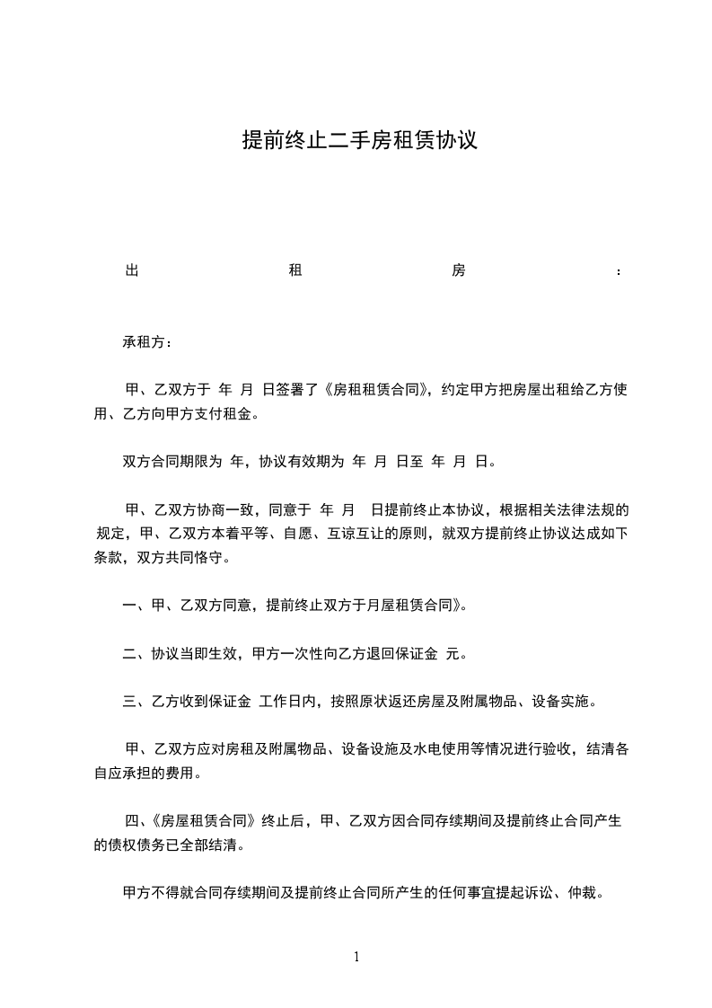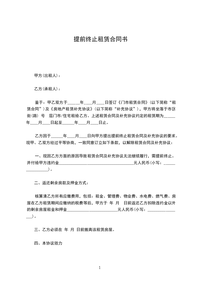 一、甲、乙双方同意,提前终止双方于月屋租赁合同》。