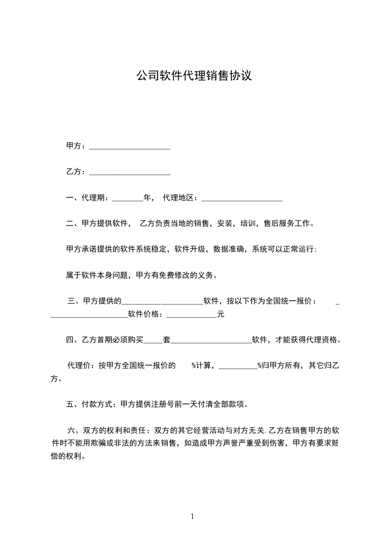 六、双方的权利和责任:双方的其它经营活动与对方无关.乙方在销售甲方的软件时不能用欺骗或非法的方法来销售,如造成甲方声誉严重受到伤害,甲方有要求赔偿的权利。